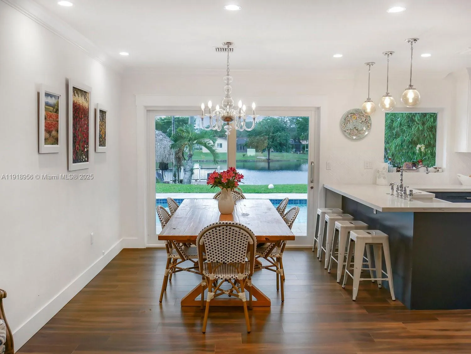 This home is truly one-of-a-kind, offering a breathtaking panoramic lake view the moment you walk in. Featuring 4 bedrooms and 2 bathrooms, the property was completely remodeled a few years ago with high-end finishes, including modern kitchen cabinetry, stainless steel appliances, tile flooring throughout, and impact windows and doors. Perfect for those who enjoy outdoor living and entertaining, the home boasts a charming Tiki Hut on a wooden deck by the lake—an ideal setting for hosting family and friends or simply relaxing—while the children enjoy the pool. Do not miss the opportunity to live in one of the most peaceful and prestigious areas of Miami Lakes.