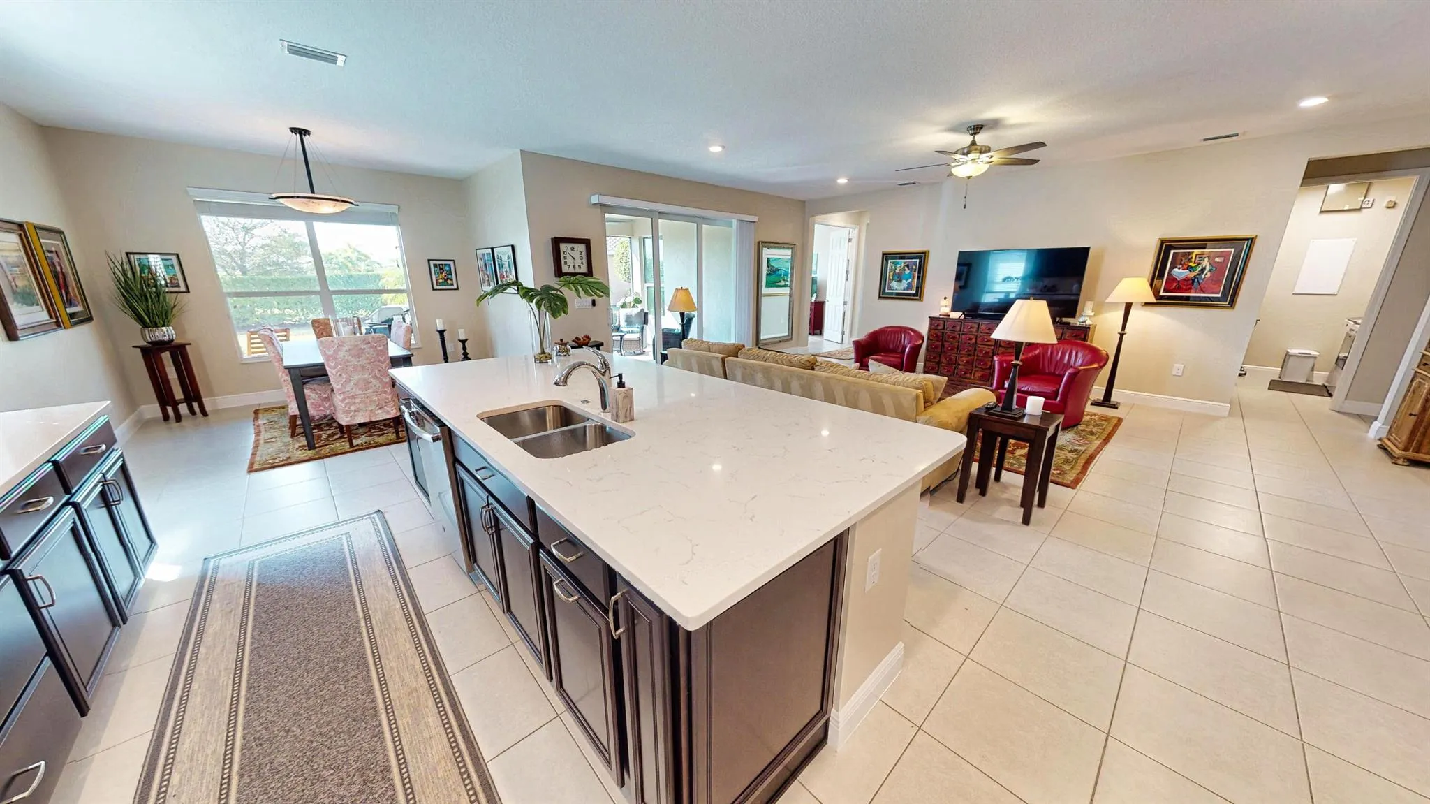 Welcome to this beautifully upgraded 3-bedroom, 2.5-bath home offering 2,446 sq ft of elegant living space in the sought-after, 55+ gated community of Vitalia at Tradition. From the moment you arrive, you’ll notice the meticulously upgraded landscaping and freshly painted exterior, setting the tone for the exceptional features inside. Step into a bright, open floor plan featuring upgraded flooring throughout, including brand-new hardwood floors in all bedrooms. The spacious family room flows seamlessly into the gourmet kitchen, showcasing quartz countertops, dual wall ovens, cooktop, upgraded refrigerator, and an expansive island perfect for entertaining.