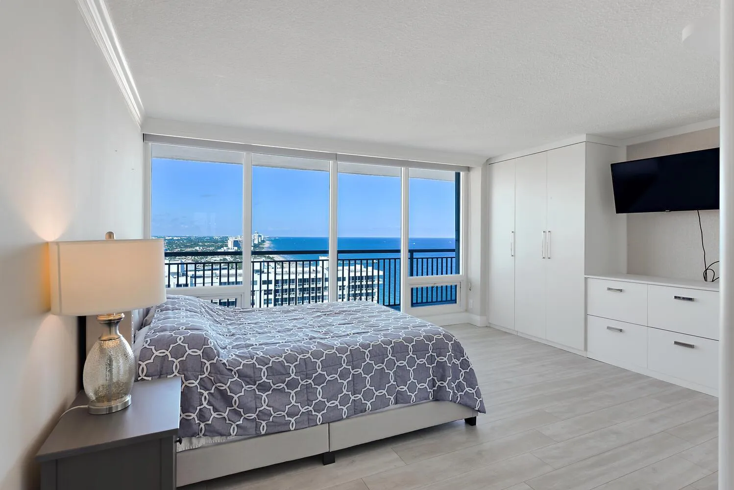The Penthouse at the Coveted Plaza South featuring mesmerizing panoramic ocean and city views. High ceilings and extra balcony space lends to greater enjoyment of this peaceful, beautifully renovated and fully furnished space. Spacious bedrooms with abundant closet space. Finely renovated bathrooms and laundry room as well. Coastal elegance at its finest.The building with 24 hour/security. Olympic size salt water heated pool, fabulous gym, sauna, oceanfront community room, billiards, library, BBQ’s. Garage parking with one garage space. Walking distance to restaurants, grocery stores, entertainment, coffee shops, banking and more! Enjoy the lifestyle at one of the most desirable buildings and location on The Galt Ocean Mile ! A jewel!