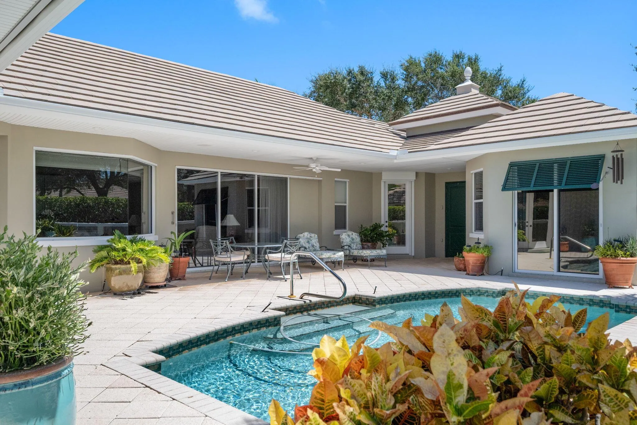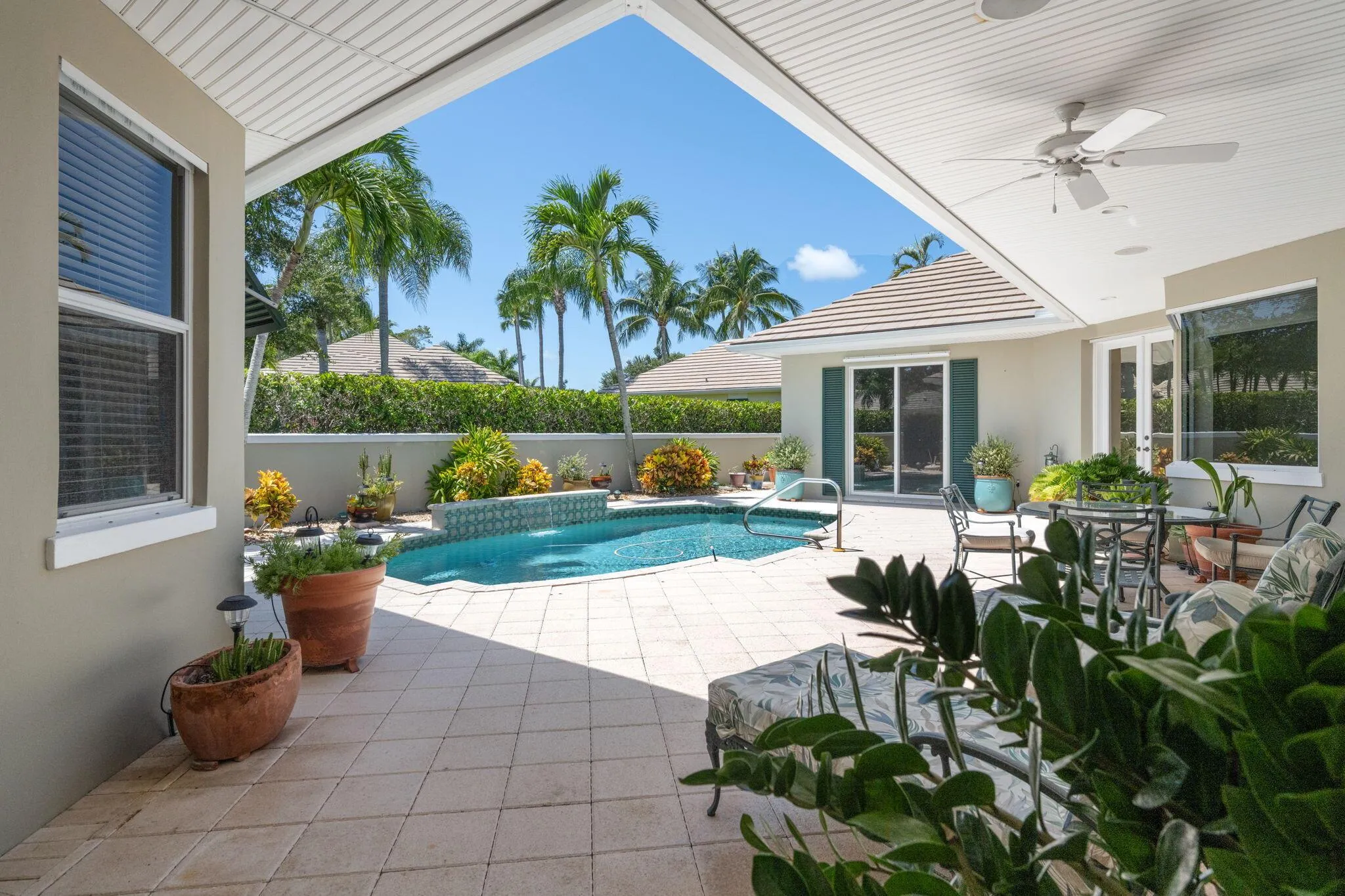Charming courtyard pool home with ideal layout for relaxed indoor/outdoor living. Main house: 2 BDRM, 2 BA, graciously expanded living space, 2-car garage; guest casita with full bath & walk-in closet doubles as office or a private retreat for guests. Pavered patio & lovely landscaping create the perfect setting for outdoor living & entertaining. Small community of just 23 homes with the HOA taking care of yard & pool for low maintenance living. Closely located to The Moorings private beach access, only 3 blocks away. 2 pets (no pet weight restrictions) with board approval.