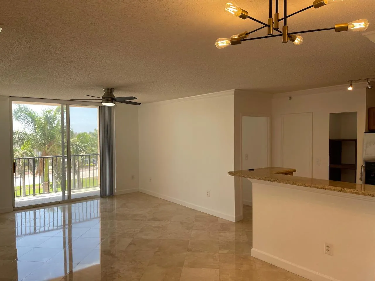 Cityplace Tower Condo-Walk out your door and be in the heart of Cityplace! 2BR/2BA, Desirable, Bright Southern view with balcony. Polished Marble flooring throughout, Custom upgraded Kitchen & all Marble bathes w/frameless tempered glass partitions & doors. New Hurricane impact windows & sliding glass doors. Recently updated, Newer Washer/Dryer, LED lighting & A/C, wainscoting trim on walls. Ideal location! NO pets please. Walk everywhere in Downtown, Great building with doorman, pool, fitness and business center, Literally in CityPlace walk out the door and your steps away from Kravis center, great restaurants, entertainment, fine shopping, close to the beach. Doorman building, Gym and Pool amenities.