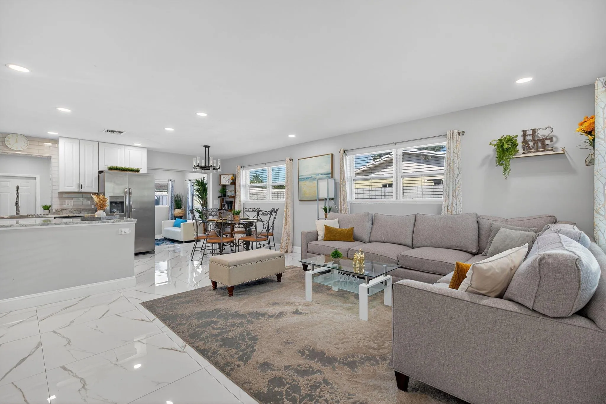 Experience refined coastal living with this beautifully upgraded 3-bedroom residence+ bonus room that features marble flooring, marble countertops, custom lighting, designer paint and a variety of high-end finishes throughout. The open concept layout flows seamlessly to a private outdoor retreat with a large pristine pool, perfect for entertaining or relaxing. A buried propane tank adds valuable flexibility to expand on the outdoor kitchen or for a house generator. Ideal as a primary residence or a lucrative AirBnb investment, this home is offered move-in ready w. impact windows/ doors, and all furnishings negotiable… combining luxury, convenience and a strong short-term rental appeal in one of the area’s most desirable non-HOA neighborhoods. Walk to public schools in the neighborhood.