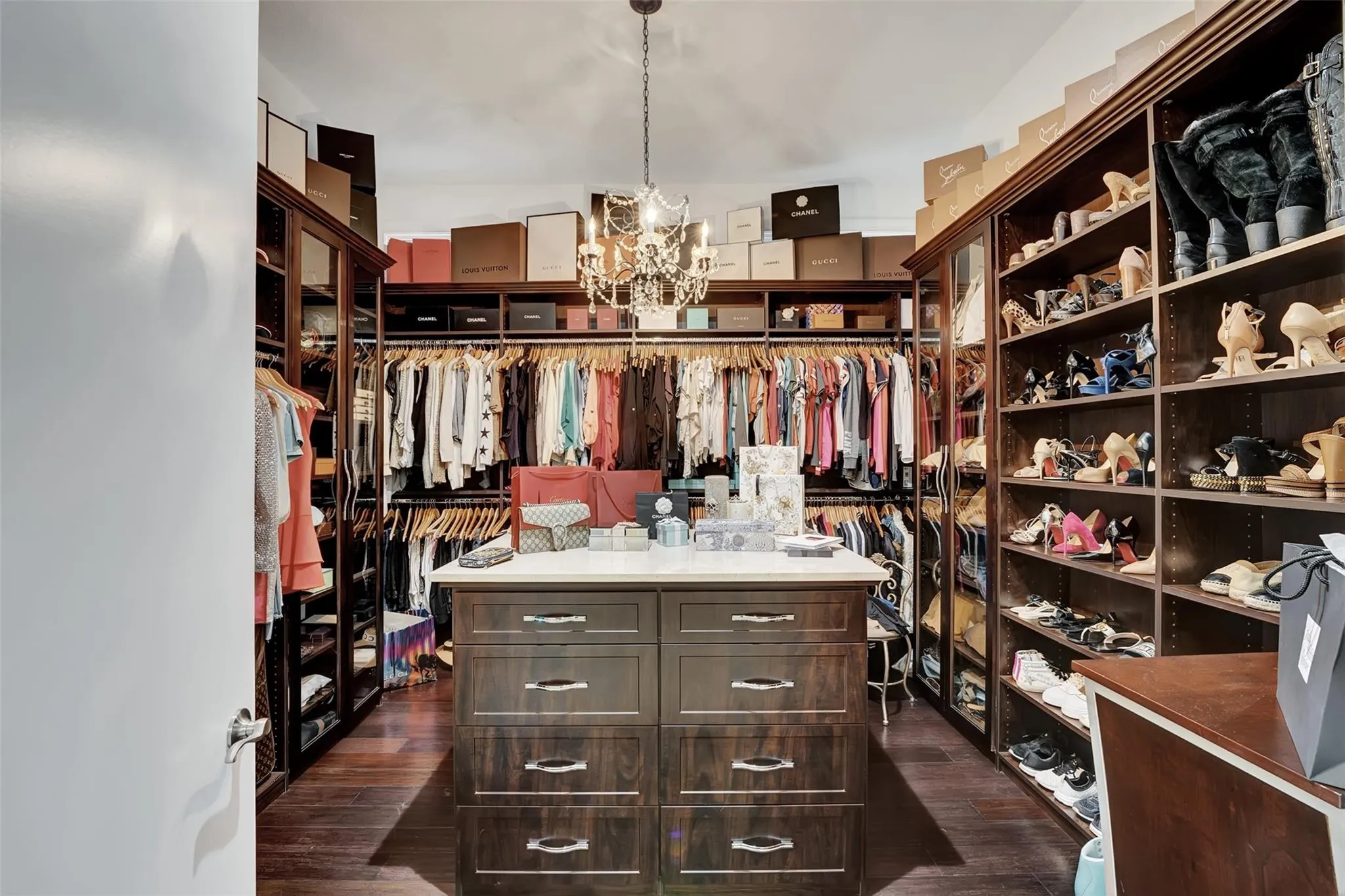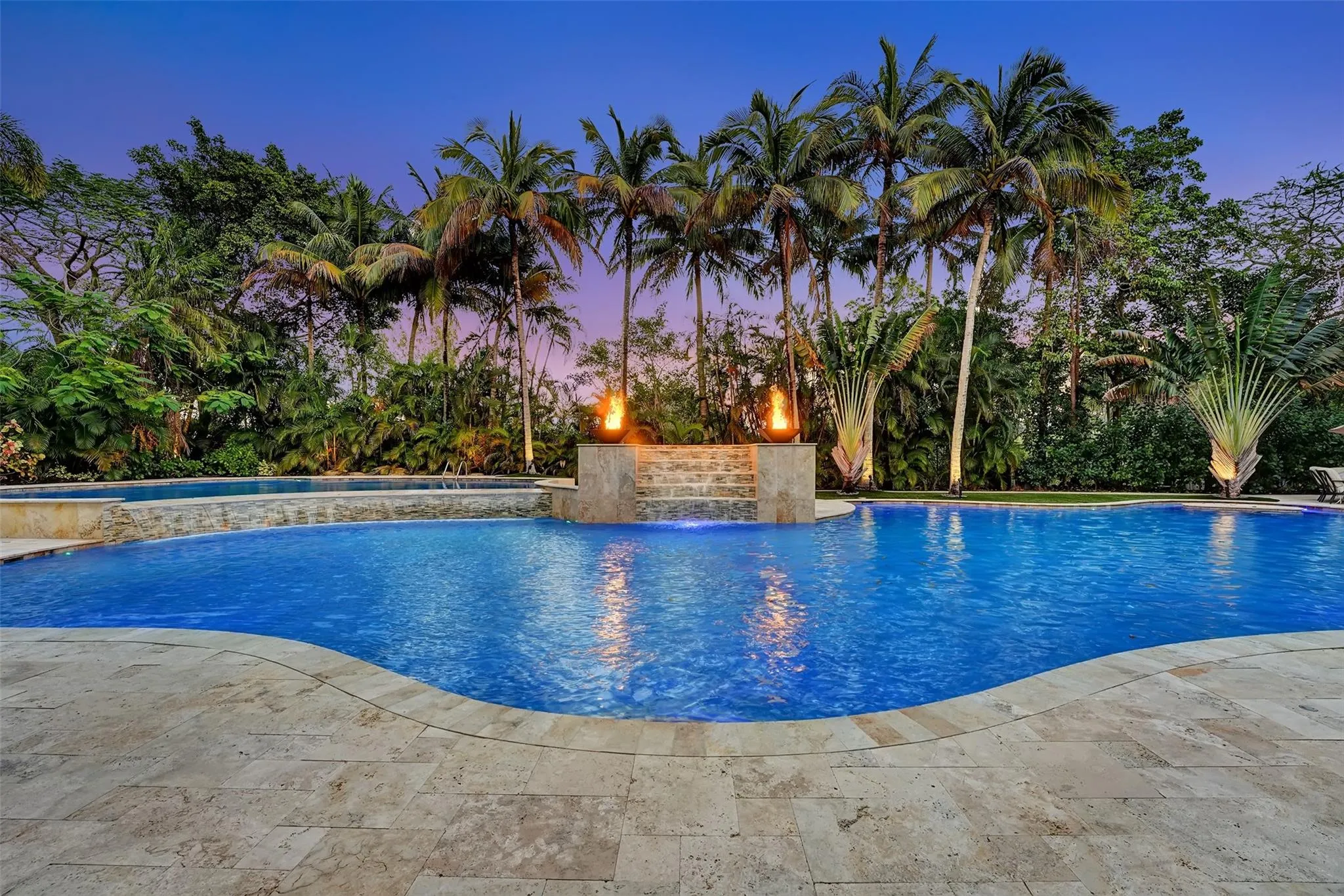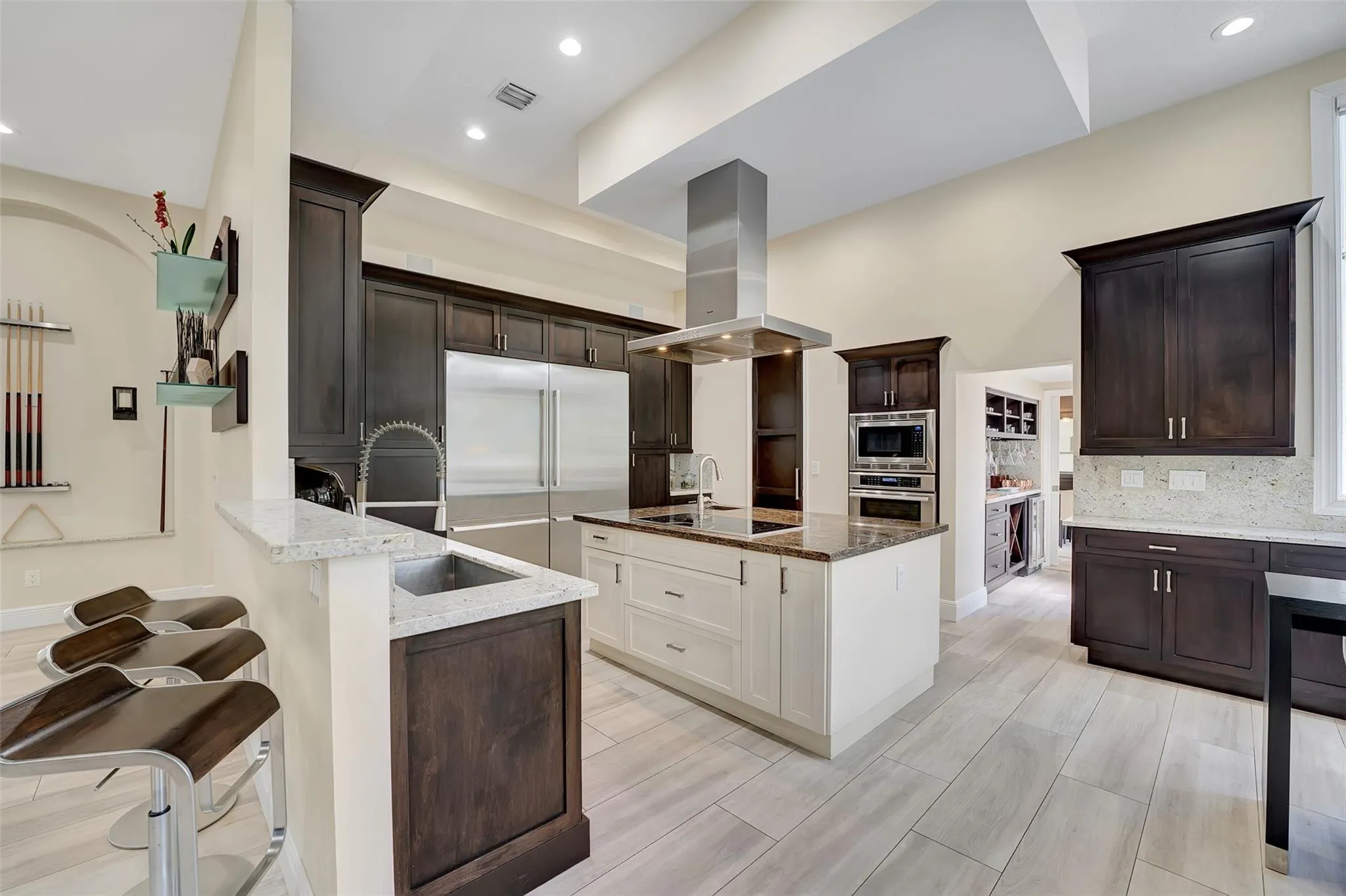 Magnificent mixture of mid-century modern and contemporary architectural masterpiece, 11,794 total square feet on 2.2 acres of private gated compound. Walk in the foyer to dramatic 30 foot ceilings and a 600 gallon jellyfish tank. Hi-end stainless steel appliances, gourmet kitchen, granite countertops, hardwood & marble floors throughout the living area! Large den, office & recreation room. Very nice in-law quarters completely separate from the main house with a full kitchen. The main attraction is the 140,000 gallon swimming pool, jacuzzi with waterfalls with a fire feature, & a swim-up bar. Large windows everywhere, sun filled in every room. Private patios w/ views of pool, land, basketball court, and much more. If you love to entertain this is the home for it, it is your own resort!