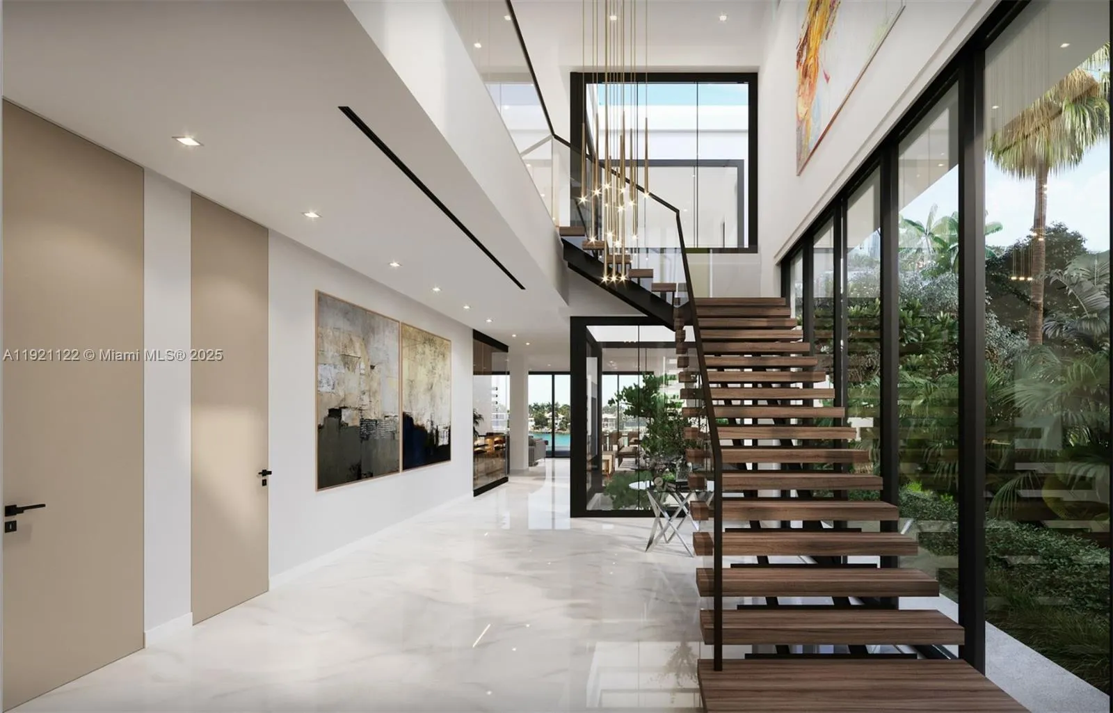 Coming Summer 2026! rnrnBrand-new modern waterfront masterpiece in prestigious Miami Beach. This 5,050 SF two-story residence blends bold contemporary architecture with warm natural materials, dramatic glass walls, and seamless indoor-outdoor living. Set directly on the water with boat access, the home offers an exceptional lifestyle for those who want to enjoy Miami Beach by land and sea.rnrnA striking double-height foyer with floating wood-and-glass staircase sets the tone, leading into expansive living and dining areas framed by oversized sliding glass doors opening to the resort-style backyard.rnrnThe main level features a chef’s kitchen with large island, premium finishes, integrated millwork, multiple lounge spaces, a guest suite, cabana bath, and direct access to the covered terrace, summer kitchen, pool, and lush landscaping.rnrnUpstairs, the grand primary suite offers a spa-caliber bath with soaking tub, oversized shower, terrace access, and a boutique-style walk-in closet. Additional bedrooms are generously sized with en-suite baths and refined detailing throughout.rnrnAdditional highlights include elevated construction to current flood standards, a two-car garage with modern glass doors, landscaped entry with reflective pond, and a clean, minimalist aesthetic throughout. Minutes from beaches, top schools, dining, and everything Miami Beach offers—this residence delivers luxury, privacy, and a world-class waterfront lifestyle.