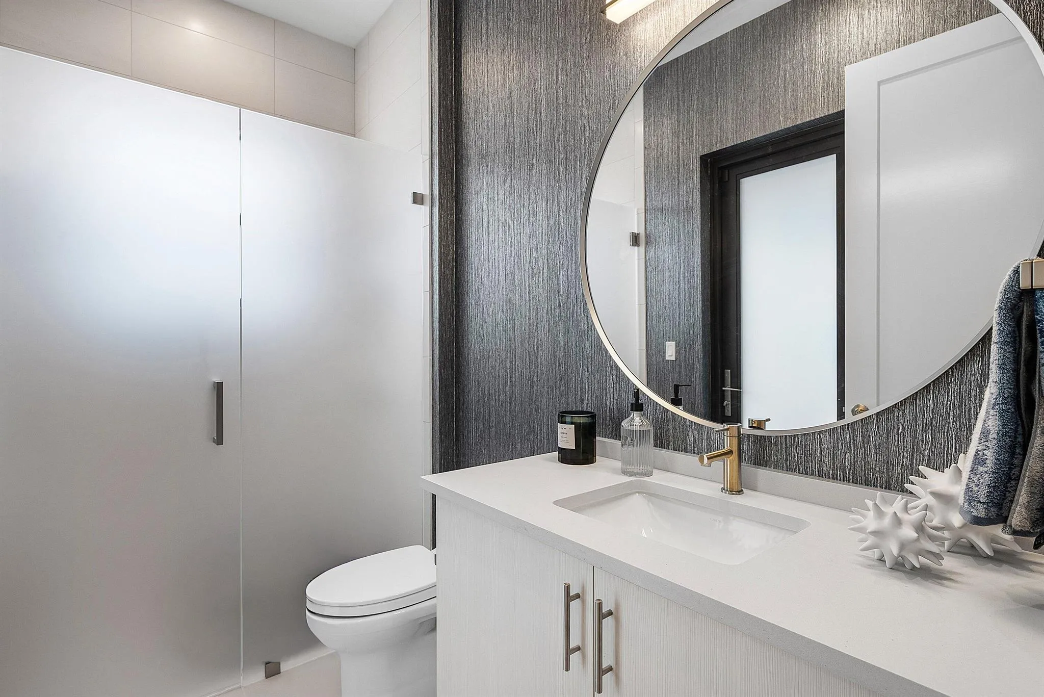 Welcome to this exceptional Laguna residence in the sought-after community of Lotus Palms, perfectly positioned on a premium lake lot at the end of a quiet cul-de-sac. From the moment you arrive, you are greeted with beautiful lake views from both the front and back of the home, creating a serene and private setting rarely found in the community. Masterfully upgraded inside and out, this residence delivers refined design, thoughtful functionality, and a true resort-style living experience.A grand entry sets the tone with a custom foyer chandelier, paneled feature wall, and designer finishes that continue throughout the home. Thoughtfully designed for today’s lifestyle, the residence offers 5 total bedrooms, including one full bedroom with a private en-suite bath on the main level–