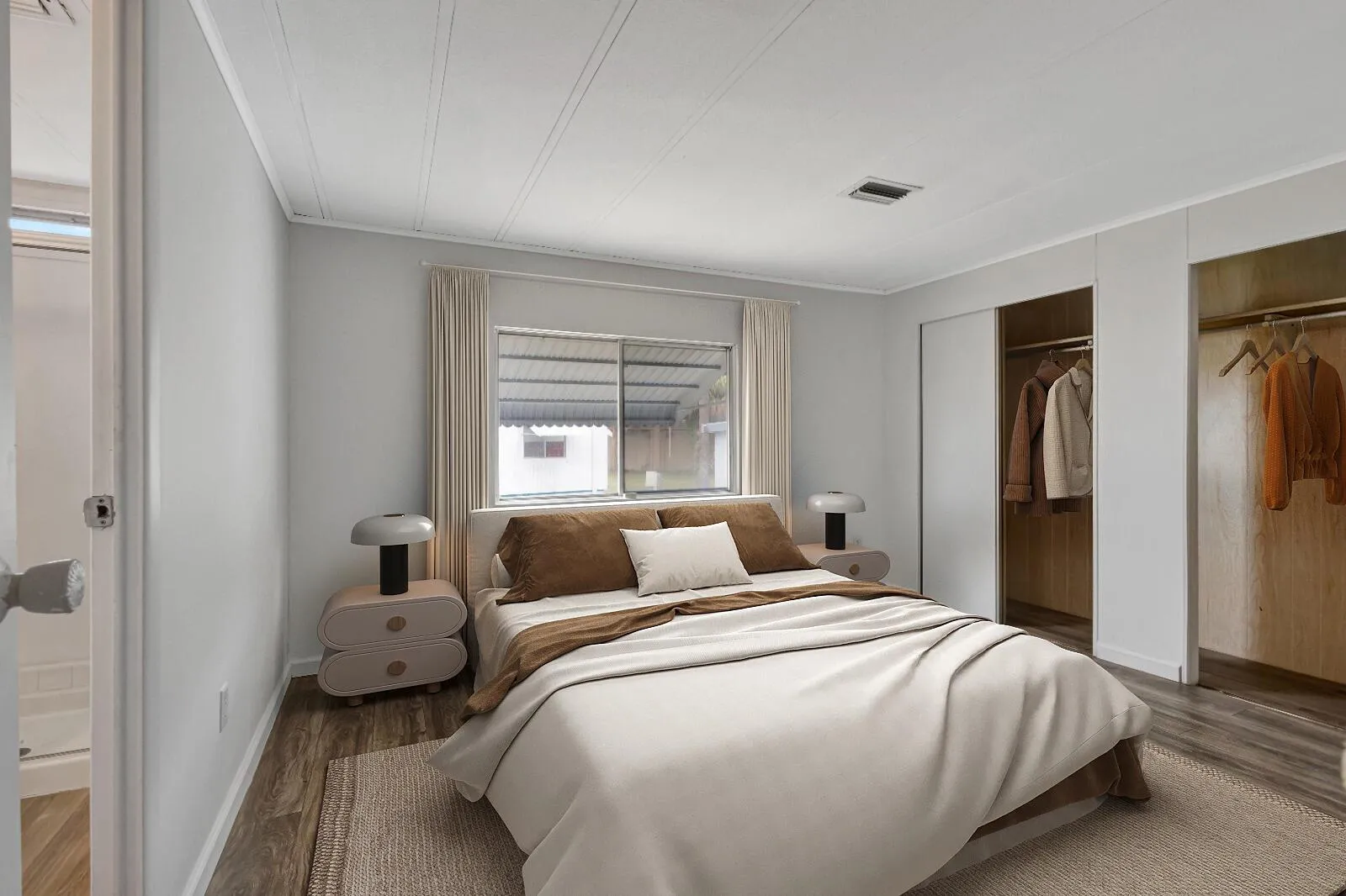 Rent to Own and …Now Offering Owner Financing …. Monthly payment is $1,800 monthly , own your own mobile home for the price that you can rent. This is a renovated 3-bedroom, 2-bath mobile home. It has a brand new full-size kitchen with updated cabinets, a fully upgraded bathroom, and modern laminate flooring throughout. There are AC units in each room for added comfort. The home is located in a quiet 55+ community.
