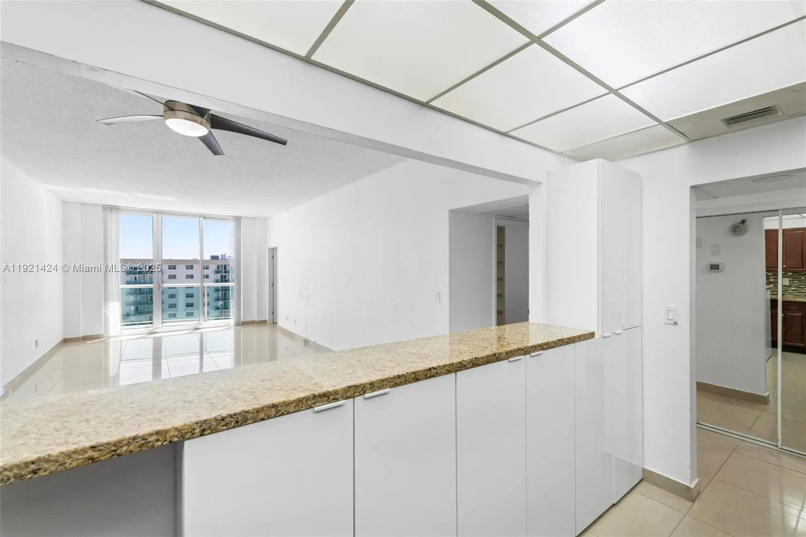 Live luxury, beachfront, penthouse-living in the sought-after Oceanview B community, with ocean views, and city views spanning from Hallandale to Sunny Isles Beach. Beautifully redesigned, the top floor features higher ceilings on a 1-bedroom plus enclosed den, complemented by a full bath and a guest bath. Open kitchen with granite countertops, a serving counter bar, top-rated Samsung black stainless steel appliances. Large porcelain tiles throughout, a spacious balcony with hurricane-proof glass railings and doors. High-end amenities (gym, studio, tennis courts, pool, conference rm, game room) & utilities (HD cable, high-speed internet) part of HOA fees, ie less monthly expenses. Treat yourself to the lifestyle you deserve!