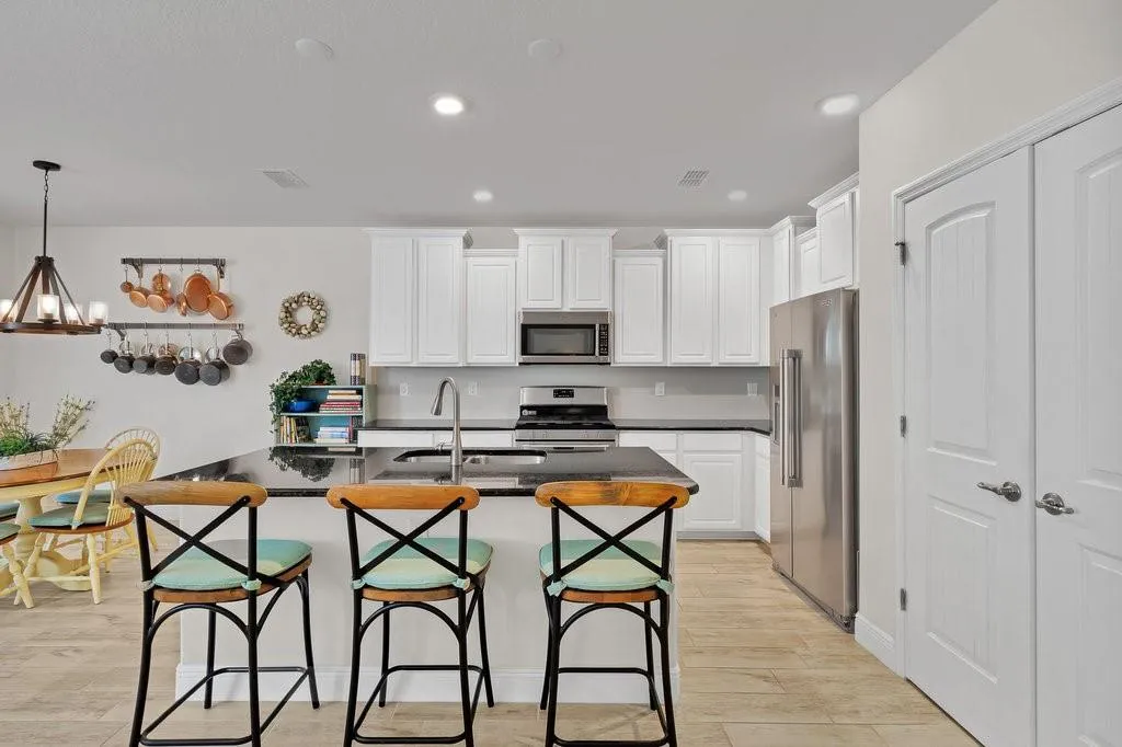 Welcome to 55+ Harmony Reserve, a premier gated community surrounded by a tranquil preserve offering an active lifestyle & amenities. This 2 Bedroom, 2 Bath plus FLEX room features impact windows, tankless water heater, porcelain tile floors thru-out, plantation shutters, island kitchen, granite countertops, white cabinetry, nice pantry & natural gas cooking. The dining room offers custom window treatments & a view of the lanai & preserve. The main bedroom offers a large walk-in closet & walk-in shower. Outside, enjoy views of the Preserve on a covered, screened lanai & an extended paver area.