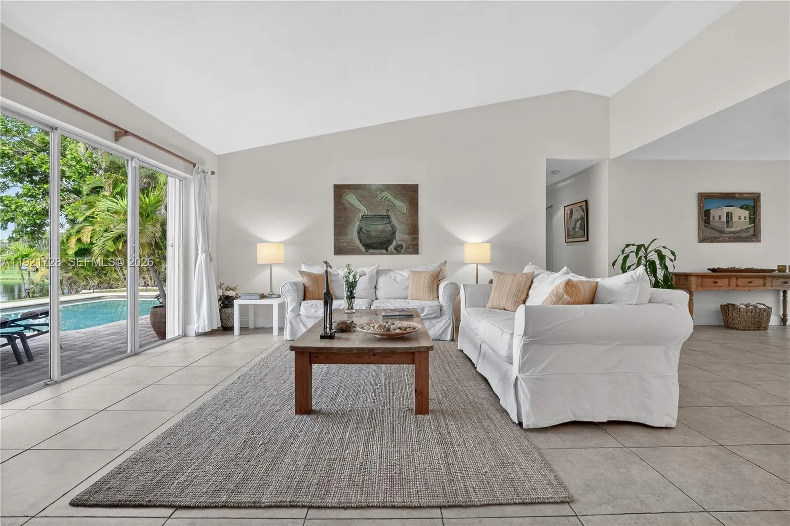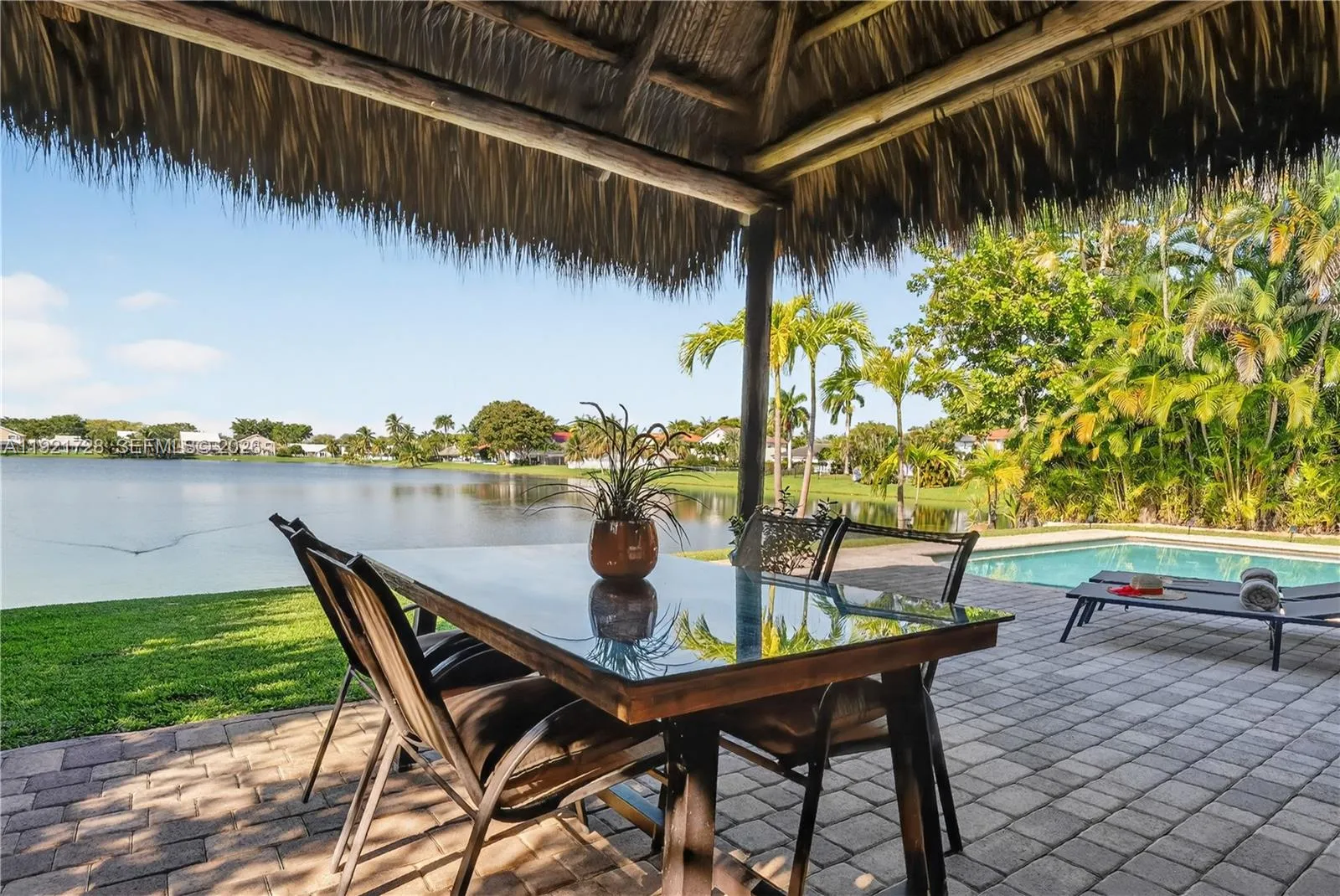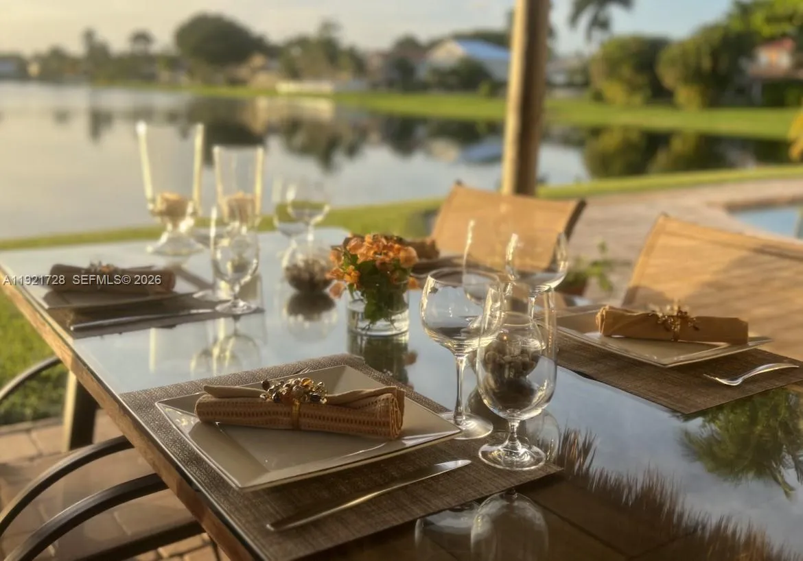 Experience true Florida lakefront living with year-round sunsets!rnLakefront pool home offering a calm, open layout and unobstructed water views from the main living areas and primary suite. Bright interiors, natural tones, and wood accents create a warm atmosphere. The backyard features a covered tiki area with fan, perfect for gatherings, plus a portable grill and a Cuisinart griddle on wheels.rnHouse features 3 bedrooms + office/flex room, 2 bathrooms, impact protection (accordion and/or impact windows), salt-system pool, sprinkler with well, smart alarm, remote lock, auto-on lights, camera system. Pets OK.rnHome is sold FULLY FURNISHED with a warm, natural aesthetic and custom wood furniture, including artisan pieces and quality décor. Some art pieces are not included, but all electronics and fixtures are, making this property truly move-in ready and ideal for relocations. Please tour the house through the ATTACHED PHOTOS.rnHOA is paid quarterly and averages $98/month. It covers lake maintenance and community aesthetics management. Prime location east of Old Cutler Road, close to top schools, parks, and Black Point Marina. Cutler Bay is a booming city in Miami-Dade, with plenty of attractions. The home is located at “Lakes by the Bay” community, close to Turnpike, taking just a 35-minute drive—outside rush hour—to reach Miami International Airport. Built in 1996 under the significantly improved 1994 Building Code. Great opportunity to own this unique home! Easy to show!