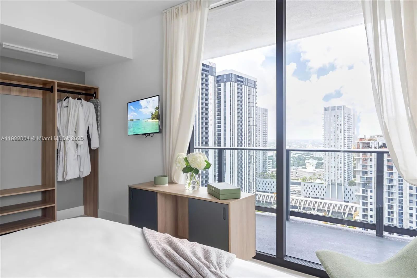 Step into this fully furnished, move-in-ready residence showcasing stunning city and bay views. Perfect as a chic urban home or high-performing investment, this unit offers style and flexibility in a brand-new 2024 building.rnrnEnjoy resort-style amenities including a full-service spa, pool, kids’ play area, three on-site restaurants, meeting rooms, and more.rnrnThe 2-bed, 2-bath layout features designer décor, a wraparound balcony, custom closets, and exceptional attention to detail—truly turn-key.rnrnUnbeatable location across from the Kaseya Center, and just steps to Miami Worldcenter, Bayside Marketplace, and the waterfront—live or invest in the center of it all.