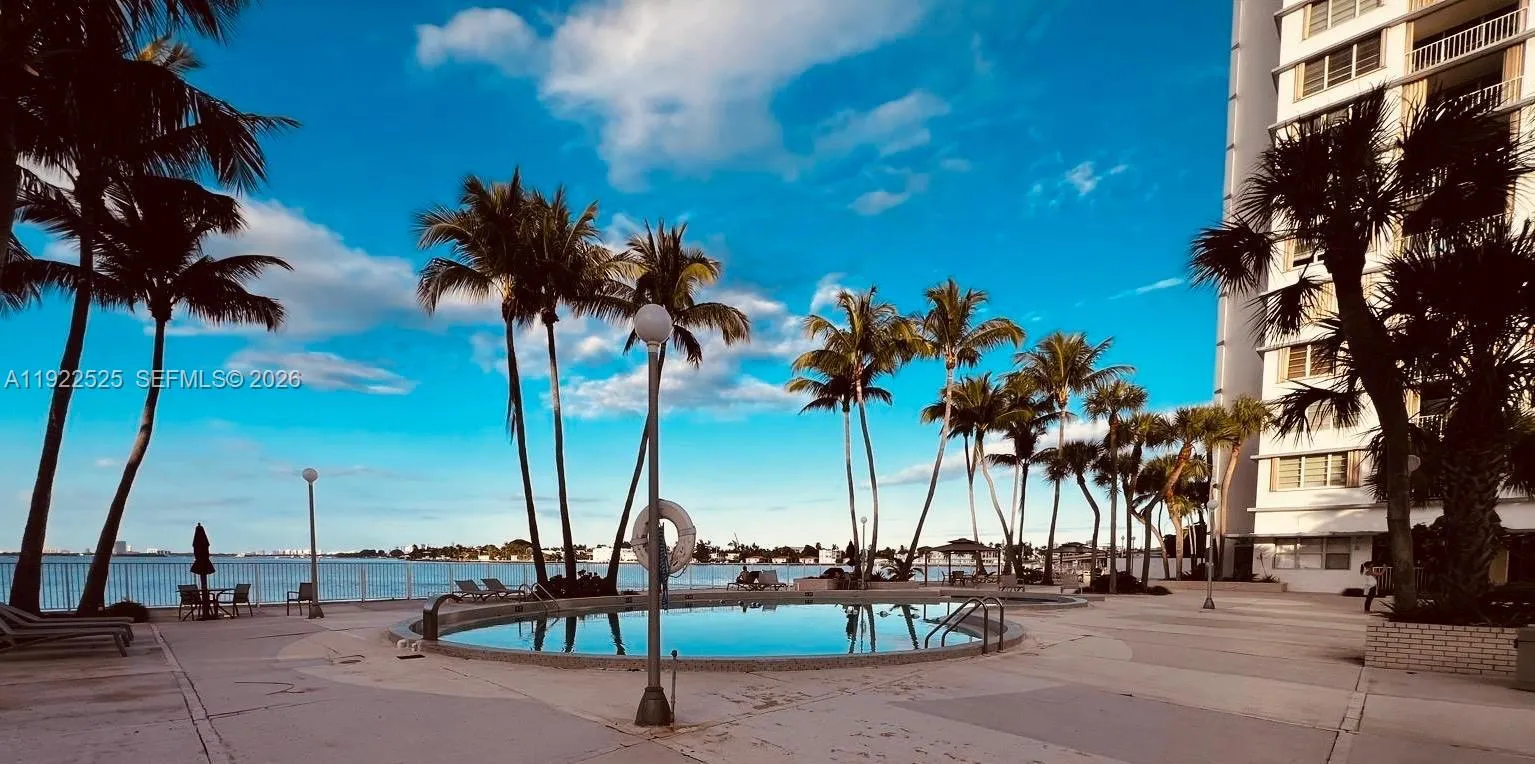 Unit totally remodeled with luxury laminated floors and new kitchen cabinets. Large master bedroom with huge closet and plenty of storage. Great Bay views from balcony and bedroom. Recently installed Hurricane Impact windows and balcony sliding door. Laundry facilities in each floor fr your convenience. Amenities includes: activity room, brand new Gym, BBQ area and a great heated pool facing the Bay.The building features a brand new lobby. Close to the beach. Just 1st month and 1 month security to move in