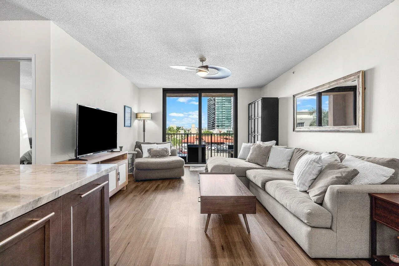 Welcome to modern luxury living in the heart of West Palm Beach! This beautifully updated 2-bedroom, 2-bath residence at The Tower blends contemporary style with everyday comfort, just steps from the energy and convenience of downtown.Step inside to discover a stunningly renovated kitchen, featuring rich espresso cabinetry, stainless steel appliances, sleek hardware, and gorgeous stone countertops with an expansive peninsula–perfect for entertaining. Warm wood-look flooring flows throughout the home, enhancing the open-concept living and dining area that leads to your private balcony.The spacious primary suite offers a peaceful retreat with ample closet space and an updated ensuite bath. A well-appointed second bedroom and full bath complete this home.