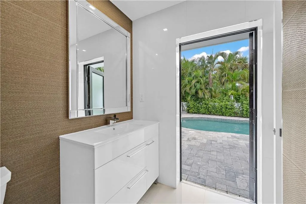 Nothing compares to this fully renovated, magazine-quality residence in Coral Ridge. Taken down to the studs, this home blends Mid-Century influence with modern luxury.rnThe massive, open-concept living space features dramatic exposed wood volume ceilings and a stone fireplace. Stunning light ceramic floors are laid in a sophisticated herringbone pattern throughout.rnThe gourmet kitchen boasts sleek Italian Cabinetry and built-in appliances. The luxurious primary suite includes a spa-like bath and a 24-foot master closet. Enjoy ultimate privacy in the walled, gated compound with a resort-style lagoon pool. Located on a desired corner lot, you’re minutes from Las Olas, The Galleria, beaches, and renowned dining. Experience exceptional coastal living!