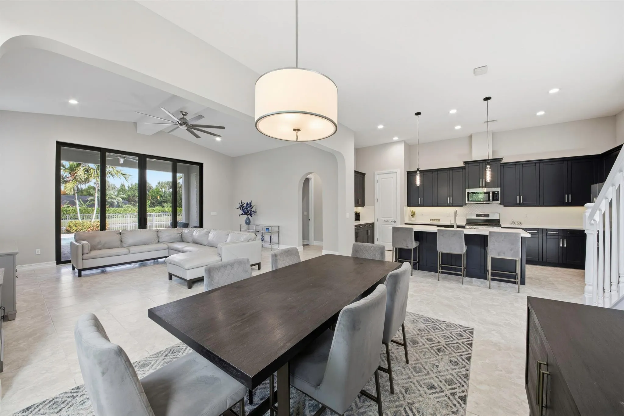Unparalleled elegance with pool and panoramic lake views! This Provence model in Palm Meadows Estates is a stunning 4 bedroom plus den and loft, 4.5 bath home showcasing exceptional design and impressive upgrades throughout. A double-door entrance opens to an impressive two-story foyer, setting the tone for the elegant design throughout. The stunning chef’s kitchen features quartz countertops, a gas stove with griddle, stainless steel farmhouse sink, stainless steel appliances, a large island with snack bar, pendant lighting, decorative tile backsplash, under-cabinet lighting, a butler’s pantry area, and a walk-in pantry closet. The bright and spacious living room offers vaulted ceilings, abundant windows, and sliders to the patio.