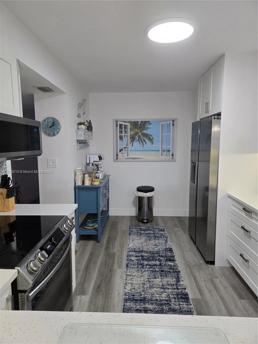Stunning Fully Renovated 2BD/2BA/ with Extra multi use Room. Move right into this open bright layout with LUXURY FEATURES:Vinyl plank flooring throughout, all new light fixtures, ceiling fans,NO popcorn ceilings,wood shutter window treatments, 2 storage closets, walk-in laundry room, premium quality W/D, all baths tile walls, quartz top, glass showers doors, and new water heater. Kitchen-all brand new white 42” cabinets, lower drawers, quartz counter tops, pantry rolling shelves, backsplash, TOP OF LINE S/S appliances with built-in air fryer, Art Design Accent Wall in dining room. The Master suite has built-in walk-in closet + 2 extra closets. Step out to a PANORAMIC LAKE VIEW from large screened balcony. This comfortable home is a lifestyle upgrade in one PACKAGE.