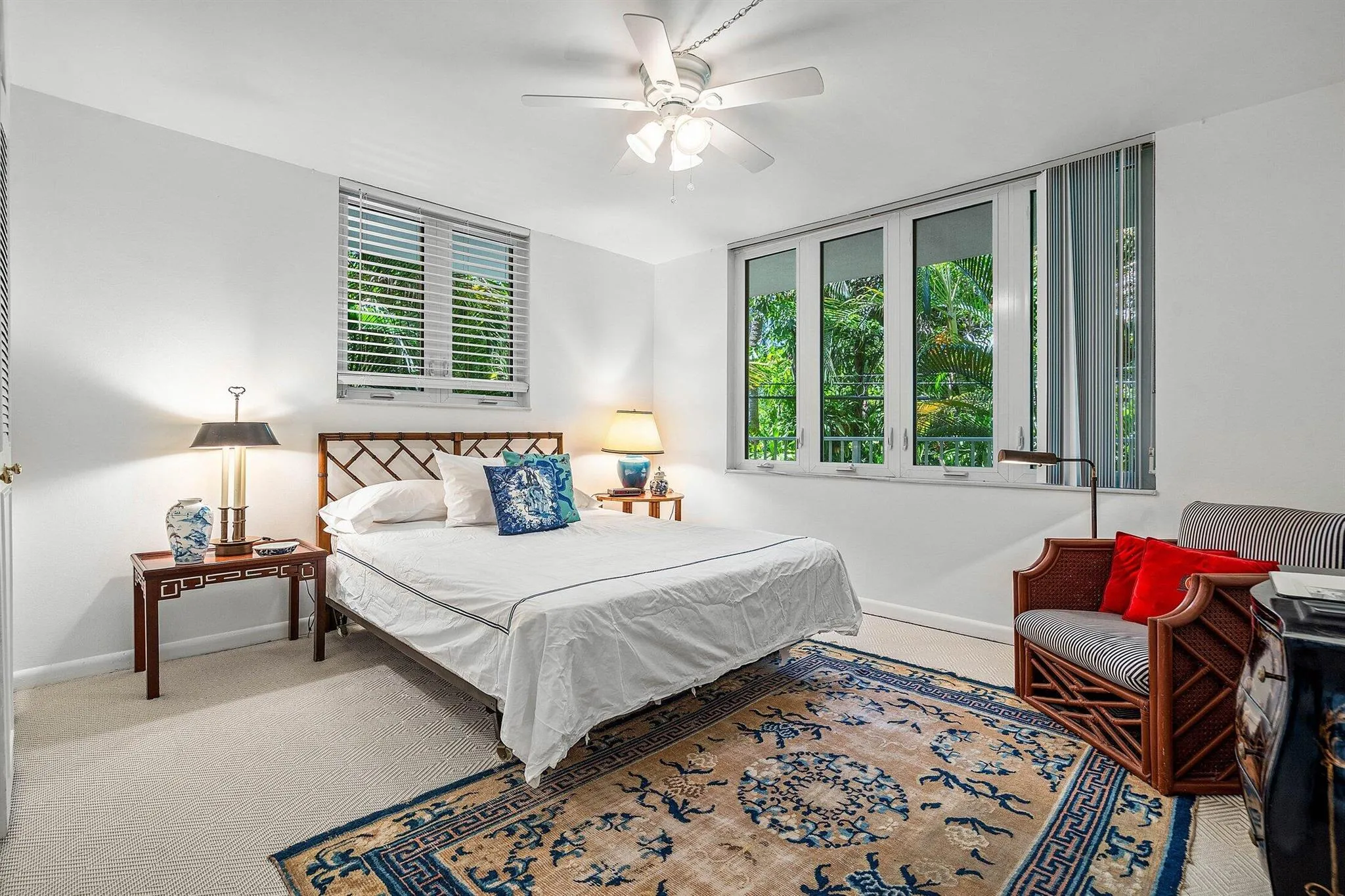 Ideally located, this in-town boutique building is situated midblock between the Atlantic Ocean and Lake Trail. Spacious 2-bedroom, 2-bathroom condominium with split floor plan and open layout. Recently updated in 2025 with new carpet and fresh paint. Corner residence features an expansive wraparound balcony in a private, quiet setting with tropical garden views for outdoor entertaining. Fully furnished for turnkey living. 223 Atlantic Ave provides covered parking, strong financials, no assessments and very low HOA dues. No wait period to lease (limit 2X/year). Updates to lobby and hallways in nearly complete. Short distance to everything Palm Beach has to offer including fine dining, premier shopping and pristine beach.