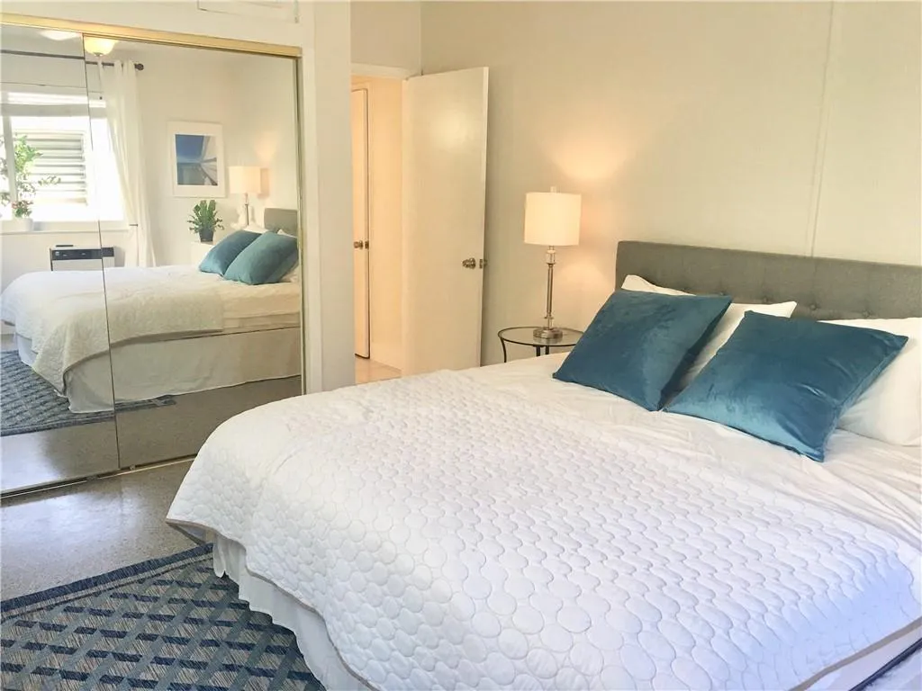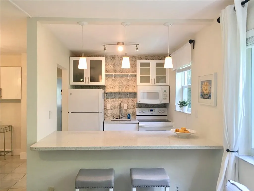 WELL DESIGNED ONE BEDROOM ONE BATH UNIT. FRESH AND CLEAN EUROPEAN FURNITURE. GREAT KITCHEN W/WINDOW AND W/QUARTZ COUNTER TOPS, WHITE CABINETRY AND APPLIANCES(MICROWAVE, REFRIGERATOR, DISHWASHER ,ICE MAKER, STOVE AND GARBAGE DISPOSAL)rnNEW BATHROOM W/WINDOW. TILE WALLS &FLOORS. HURRICANE IMPACT WINDOWS. NICE BIG CLOSETS. KING SIZE BED. TWO AC’S. HEATED POOL, 1 ASSIGNED PARKING SPOT, PRIVATE KEYED ENTRANCE, BEAUTIFUL SERENE GROUNDS, COMMUNITY LAUNDRY DRY, 5MIN WALK TO THE BEACH, QUIET NEIGHBORHOOD. ALL AGES WELCOME. FULLY FURNISHED. TURN-KEY UNIT. PET-FRIENDLY (max 20 pound)rnRENT $2000 MONTH ONE YEAR LEASE ONLY. FIRST, LAST & SECURTIYAT MOVE IN.
