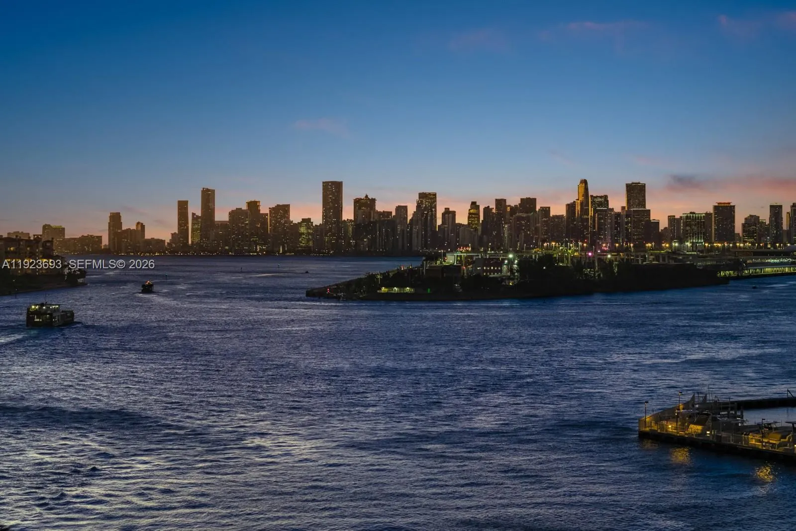 Step Inside With Me! A premier corner residence at Apogee in SoFi transformed by a multi-million-dollar renovation. Surrounded by wraparound water vistas, elevated interiors unfold through a wood-paneled foyer to the grand salon featuring Italian millwork, custom media wall, and Apparatus statement chandelier. A backlit onyx kitchen showcases Poliform cabinetry, Dekton eat-in island, and spacious pantry. The bespoke marble bar enhances the entertaining areas with a chic sitting lounge. The bayfront primary suite offers curated wallpaper, a retractable TV wall, generous dressing room, and a signature bath with curved details, Taj Mahal vanities, carved-stone shelves, and smoked-glass dual shower. 3 guest suites + office, 2 car garage, and sleek terrace grill complete this refined offering.