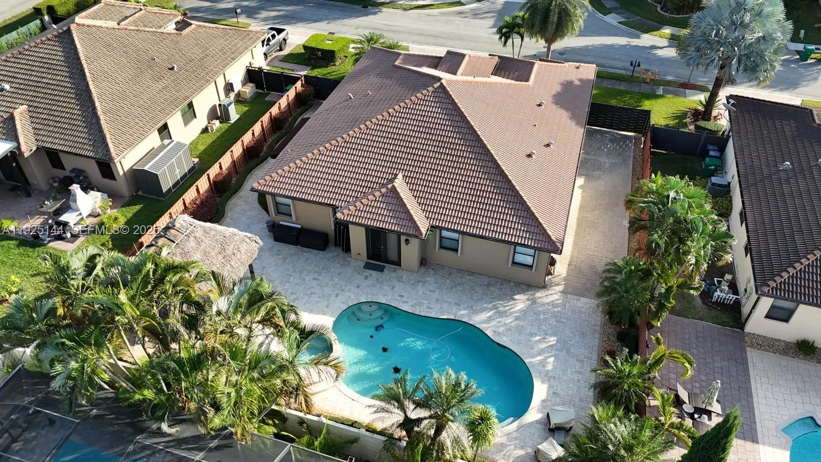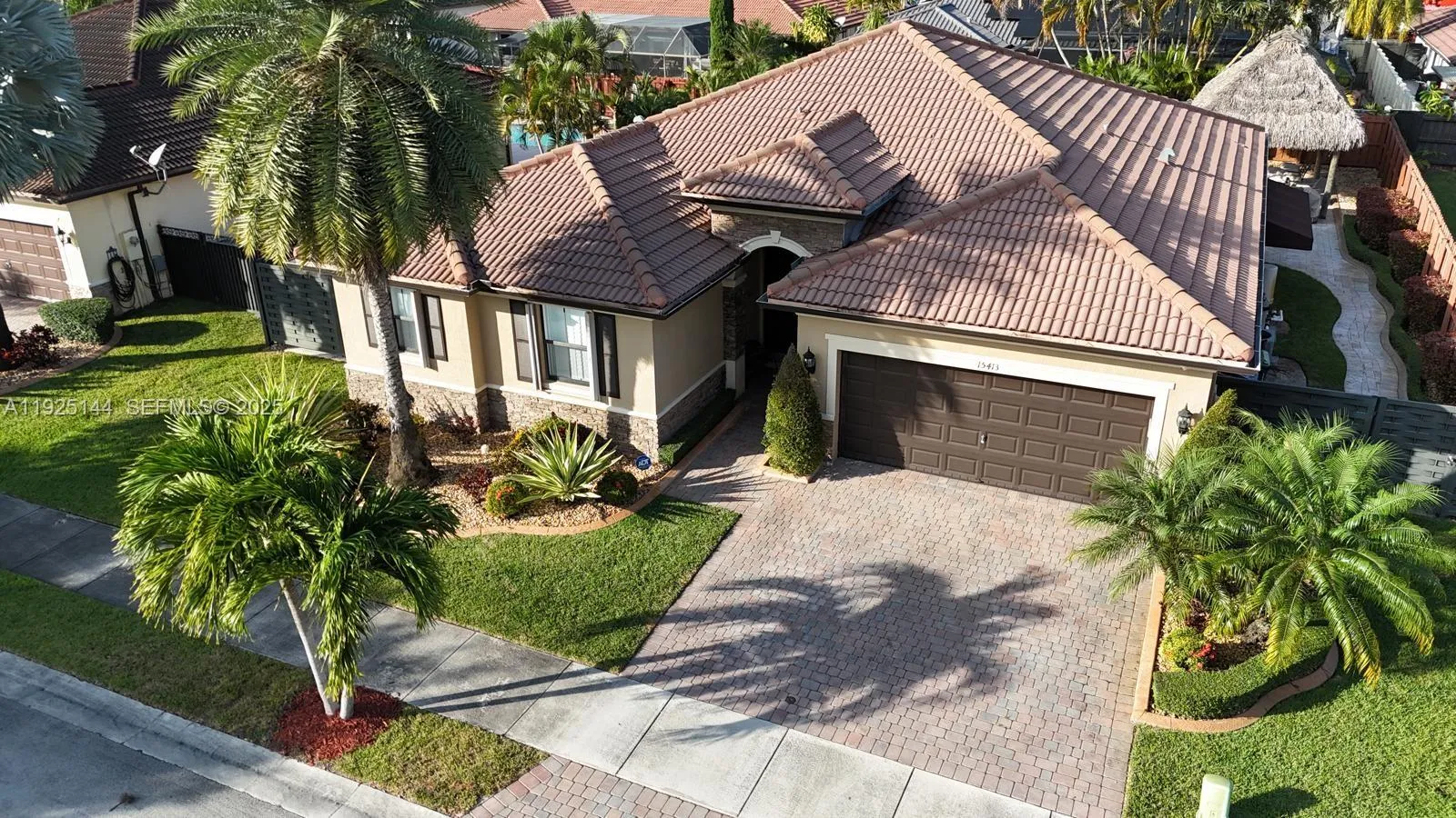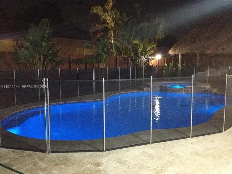 Beautiful 4/3 single-family home on an oversized lot with a spectacular backyard. Features include a freeform salt- water pool, travertine deck, tiki hut, and professional landscaping. Mediterranean-style exterior with stone façade, keyless entry, 2-car garage, accordion shutters, pavers, concrete borders, and side yard with room for a boat.rnrnInside, you’ll find a welcoming foyer, formal living and dining areas, tile throughout with wood flooring in the bedrooms, separate laundry room, volume ceilings, crown moldings, and plantation shutters. The spacious upgraded kitchen offers granite countertops, stainless steel appliances, breakfast area, and an island snack bar.rnrnThis one won’t last! Motivated Seller!! Make an Offer!