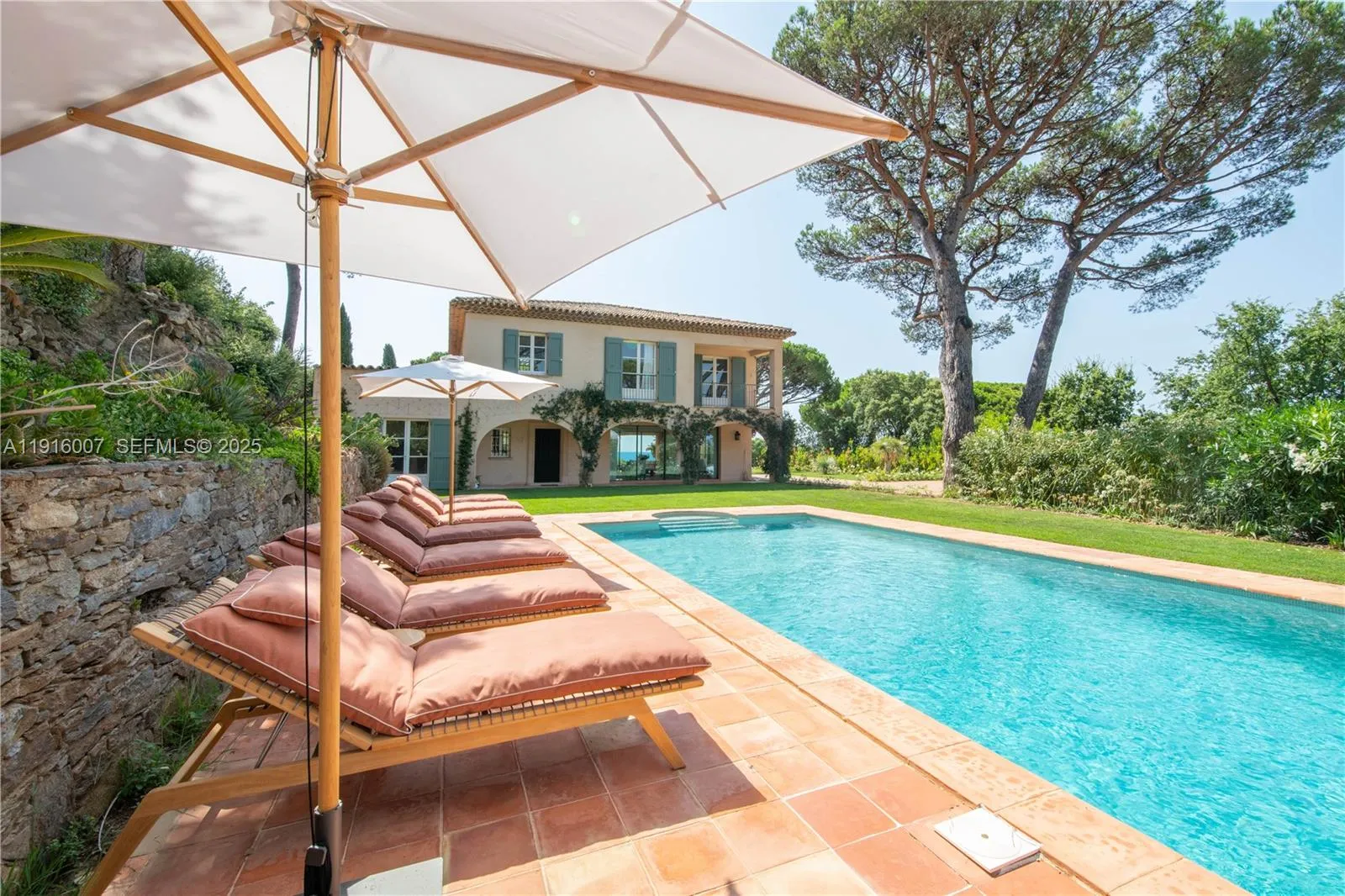Superb 3200 Square feet,5 bedrooms/5 bathrooms Provencal Villa offering a breathtaking sea view, located in the immediate vicinity of the Saint Tropez Beaches and the town center.rnThe property features a splendid living room and dining room overlooking the sea view.rnThe property sits on 30000 Square feet of landscaped Garden.rnPrice vary by the season and on the exchange rate Euro/Dollar.
