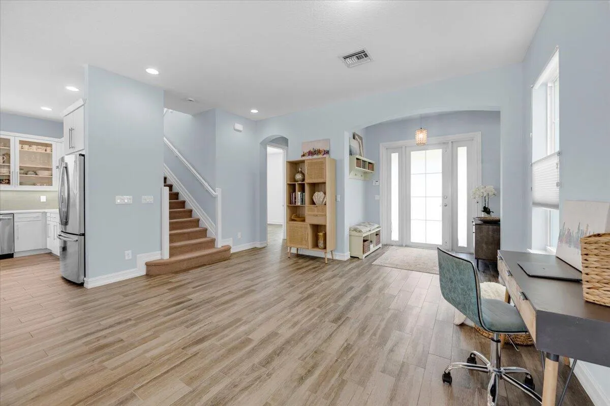 Beautifully maintained and filled with natural light, this 2015 CBS-construction, 4-bedroom, 3-bath home with a durable metal roof sits in one of Jupiter’s most sought-after neighborhoods. Hurricane-impact windows throughout provide peace of mind, while the open concept living area features oversized sliding doors that open to a private patio, perfect for relaxing or entertaining. The custom kitchen is a rare, one of a kind, find in Botanica. It includes an enclosed full-size refrigerator, oversized island, with seating, five-burner cooktop with exterior-vented hood, double wall ovens, two glass-front display cabinets, oversized sink, and a high-end under-counterfiltration system that removes up to 99.9 percent of contaminants. A pantry with sliding drawers offers abundant storage.