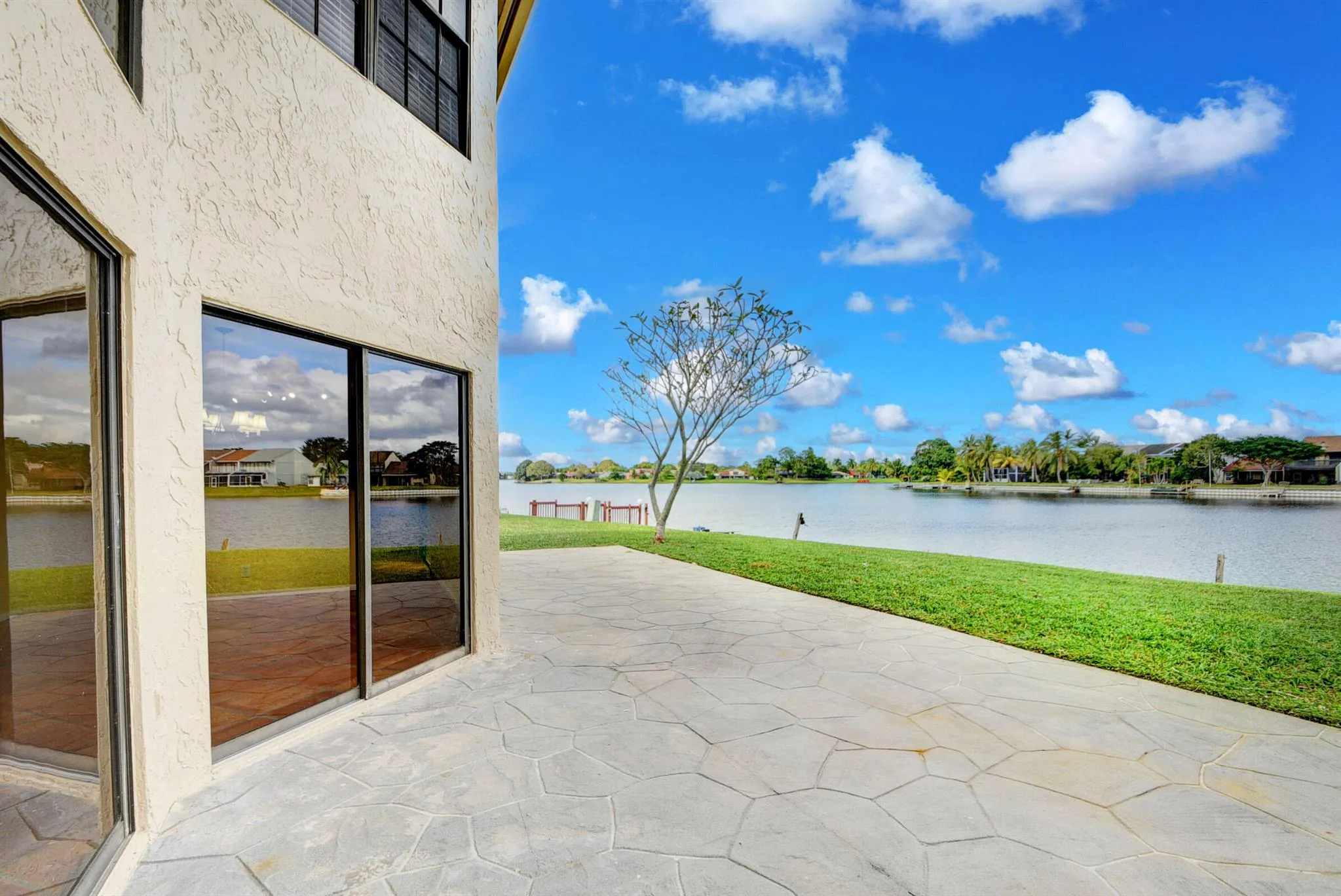 INCREDIBLE LAKE VIEWS WITH 100FT OF DIRECT CULDESAC WATERFRONT! NO CARPET! UPGRADED 3 BEDROOMS 2.5 BATH & 2 CAR GARAGE WITH HUGE PATIO & A VERY LONG DRIVEWAY ON AN OVERSIZED LOT. LIGHT, BRIGHT & AIRY WITH 3 SLIDING DOORS & ADDITIONAL WINDOWS TO APPRECIATE THE EXCEPTIONAL VIEW. TILE DOWNSTAIRS AND LAMINATE STAIRS, LOFT AND BEDROOMS, PLANTATION SHUTTERS, GOURMET KITCHEN INCLUDES UPGRADED WOOD CABINETS, GRANITE & STAINLESS APPLIANCES. SEPERATE LAUNDRY ROOM. UNDER STAIR STORAGE, PRIMARY BATH HAS GRANITE & LARGE TILE SHOWER & LARGE WALK IN CLOSET. WALK TO THE COMMUNITY POOL, SPA & FISHING PIER. LOCATED IN THE HEART OF WELLINGTON. A-RATED SCHOOLS. COME LIVE THE DREAM. ONCE YOU SEE THIS WATER VIEW YOU WON’T WANT TO LEAVE!