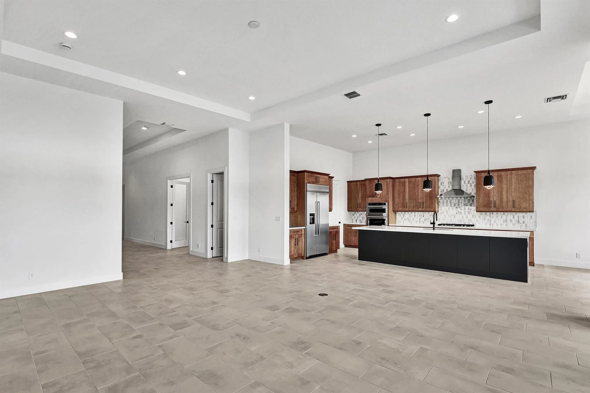 Welcome Home! Pool with Lake View! Step into this stunning residence featuring a grand foyer with soaring 12-foot ceilings and a bright, open-concept design. Gorgeous LVP flooring flows seamlessly throughout, leading you into the expansive living area. Just off the entry, a sunlit study with glass French doors offers space for a home office or library. The chef-inspired kitchen impresses with stylish two-toned cabinetry, a walk-in pantry. The luxurious primary suite showcases white shaker cabinetry, a spa-like bath with a drop-in soaking tub, a walk-in shower with bench, and a spacious closet. A conveniently located powder bath adds comfort for guests, while secondary bedrooms provide ample space for family or visitors.