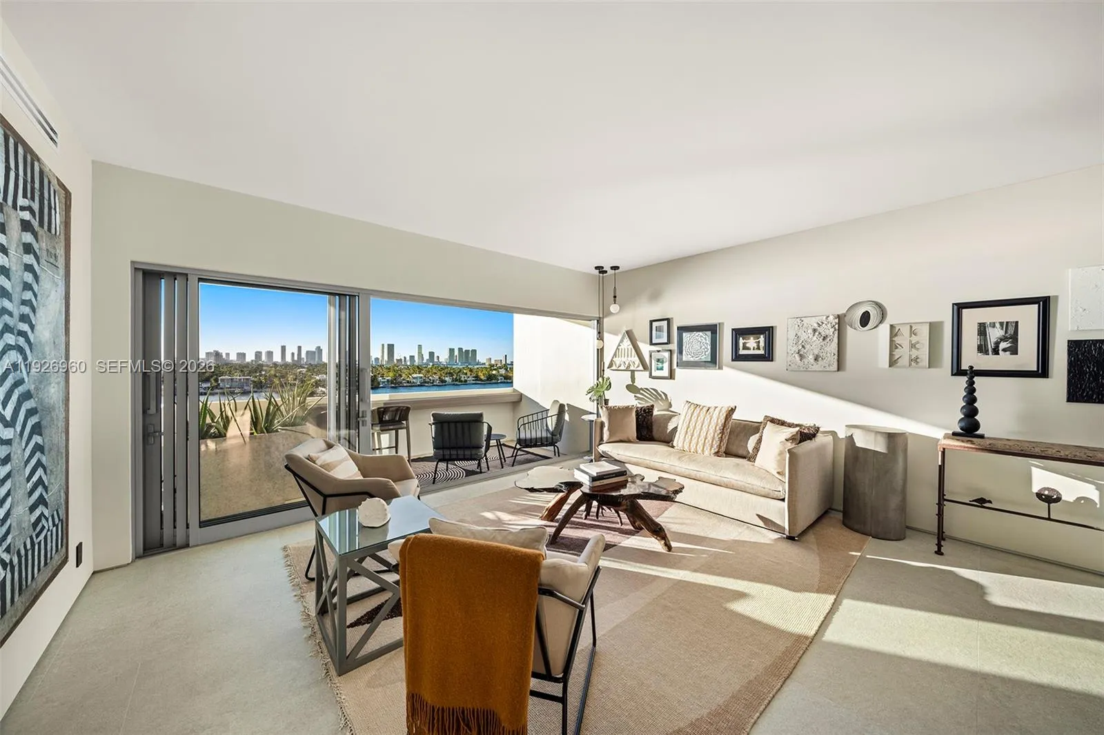 Experience luxury living at its finest in this fully gut-renovated, designer-styled residence with breathtaking, unobstructed views of Biscayne Bay, the Venetian Islands and the Miami skyline.rnPerched on the 9th floor, this is the premier unit in the building, offering dramatic sunset vistas and an elevated lifestyle on Belle Isle right across from The Standard Hotel. rnStep inside to find high-end finishes throughout, including limestone flooring, trimless floating wall detailing, custom lighting and a bespoke Italian kitchen outfitted with Fisher & Paykel appliances. The thoughtful layout features a spacious living area, spa-inspired bathrooms, a separate powder room and the convenience of an in-unit washer and dryer.rnThis apartment is available fully furnished with chic, curated art, objects and hand-selected pieces. Move-in ready for a seamless transition.rnThe building is financially sound with no outstanding special assessments, providing peace of mind for both end-users and investors. Assigned parking spot and 24/7 attended lobby.rnA rare offering that blends style, comfort, and iconic Miami views. This is bayfront living at its best.