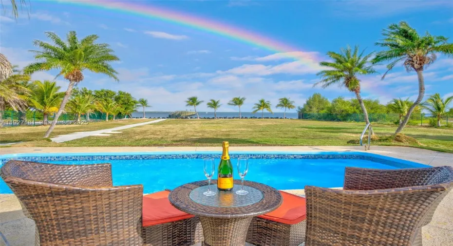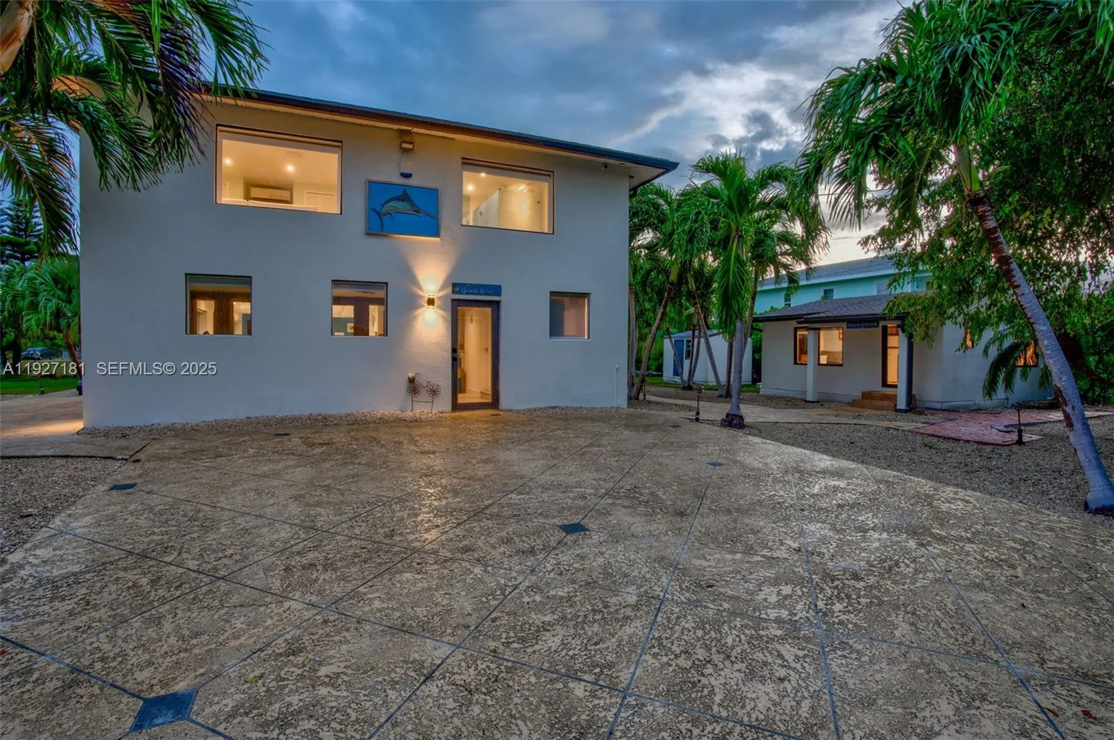Discover the easygoing charm of the Lower Keys at this .81-acre waterfront estate, featuring a two-bedroom, two-bath main house and a one-bedroom, one-bath guest cottage with views over Bogie Channel. Enjoy leisurely days entertaining under the large poolside tiki hut or on the covered platform at the end of the 463-foot pier—perfect for relaxing with family and friends while watching sunsets after a fun day on the water. The platform is equipped with a boat lift, floating jet ski dock, and an outdoor kitchen. The completely renovated, two-story CBS main home offers a spacious 1,950 sq. ft. living area with enough space to possibly add a third bedroom if needed. Large impact-resistant windows allow for views of peaceful sunrises and moonrises over the property and open water. The updated 536 sq. ft. frame-stucco guest cottage gives visitors their own comfortable retreat. Thoughtfully planned lighting enhances the 35,330 sq. ft. fenced property. Monroe County’s small Palm Villa Park borders the southern edge, and the County owns the land directly across the street to the north, intended to remain undeveloped. Move-in ready and tastefully furnished, this tranquil slice of paradise is just minutes from local shops and restaurants, and only 30 miles from lively Key West.