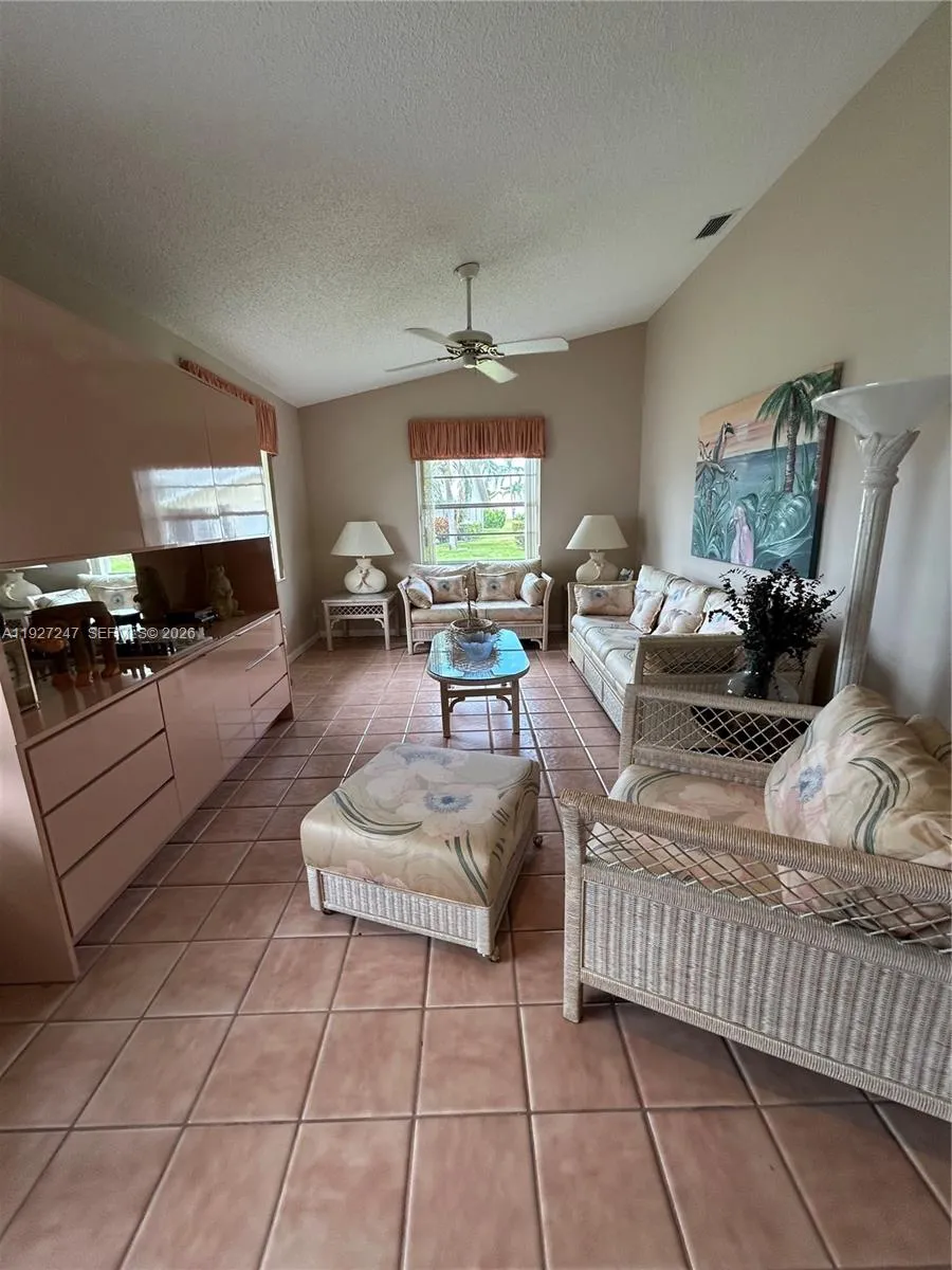 Beautifully maintained home in the wonderful community of Cypress Lakes in West Palm Beach! This home is set in the ideal location and is a 55 plus community with activities for everyone including an 18 hole golf course, tennis, pickleball, bocce ball, chess, water aerobics, yoga, shuffleboard and much more. This two bedroom, two bathroom home sits on a corner lot with a one car garage and small patio area as well as a Florida room offering lots of space. The home features high vaulted ceilings, high hat lighting, a large living room, dining area and family room/den space. Central air conditioning is newer. The home can come furnished or unfurnished as it is move in ready or waiting for your personal touches.