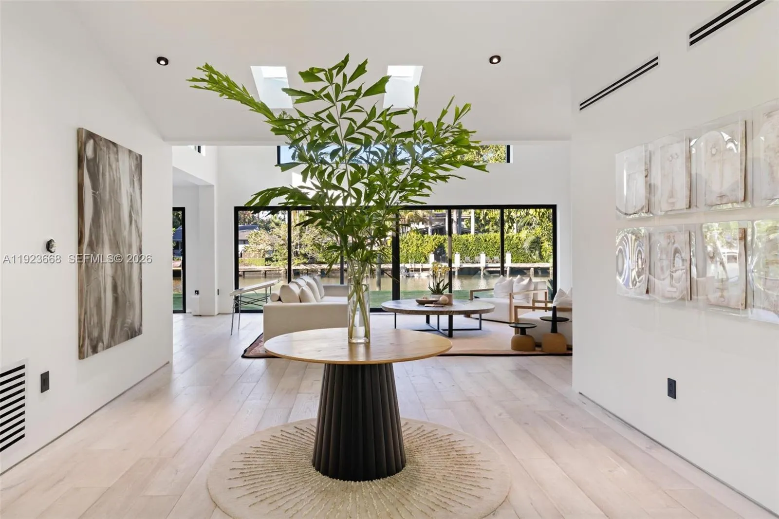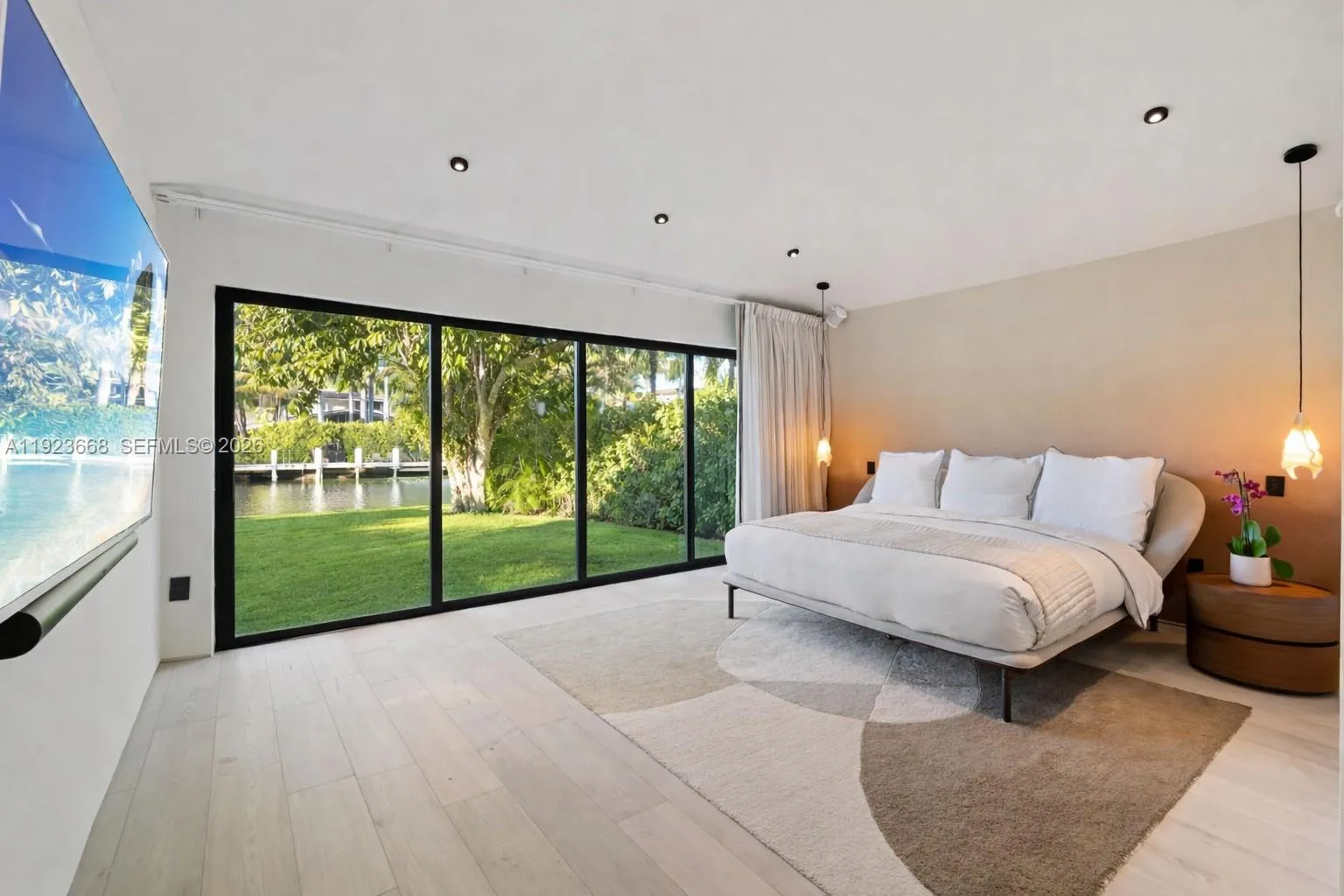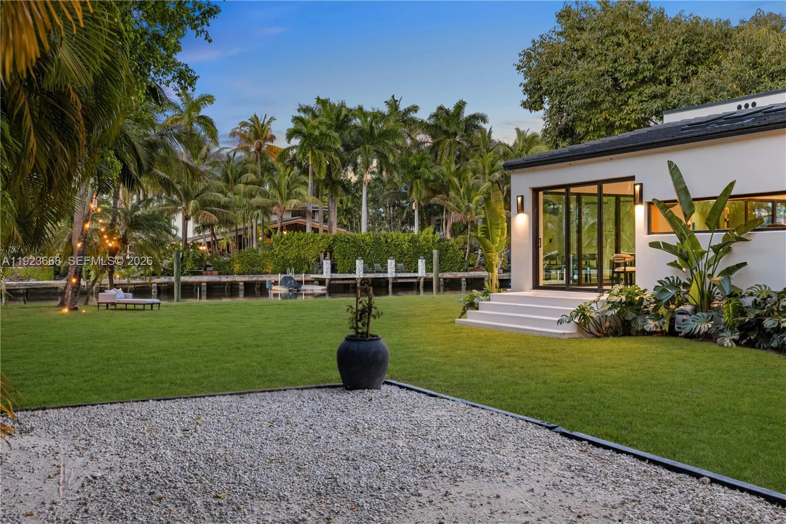 Recently fully renovated and reimagined with a complete modern transformation, this exceptional 3,100 SF residence is positioned on an elevated 16,800 SF double lot with 113 feet of direct water frontage along one of Belle Meade’s deepest and widest canals, with minimal traffic, and enhanced privacy with no fixed bridges to Biscayne Bay. Designed for elevated indoor–outdoor living, the home features soaring ceilings, a desirable split-bedroom layout for privacy, and seamless flow ideal for entertaining. Interiors showcase a gourmet Miele chef’s kitchen, custom millwork, premium finishes, Lutron HomeWorks smart lighting, whole home audio, UniFi networking, motorized window treatments, and abundant skylights that flood the home with natural light.rnThe 750 SF primary suite offers a true retreat with spa-style bath, steam shower, soaking tub, and designer stone finishes, complemented by a 225 SF custom walk-in closet with bespoke cabinetry, LED lighting, integrated sound, center island, and skylight illumination. Ideal for boating enthusiasts, the property provides direct bay access, shore power at the seawall, and an expansive yard perfect for entertaining. The grounds feature a full bocce court, lush privacy landscaping, and ample space for a future pool or expansion. Centrally located with top private schools including The Cushman School and Miami Country Day School. A rare opportunity to acquire a turnkey estate offering privacy, scale, and immediate Biscayne Bay access.