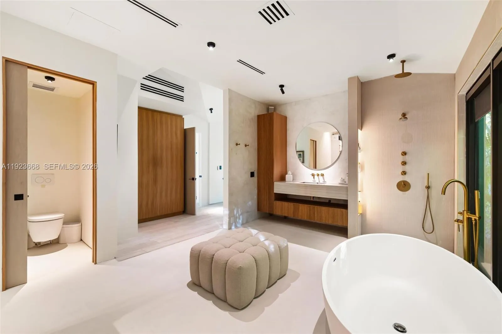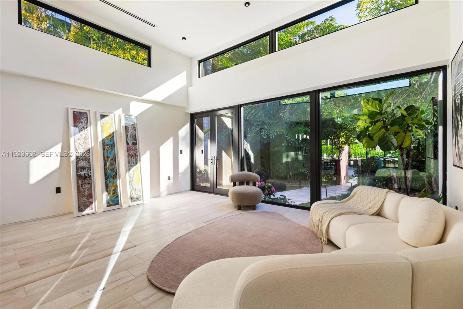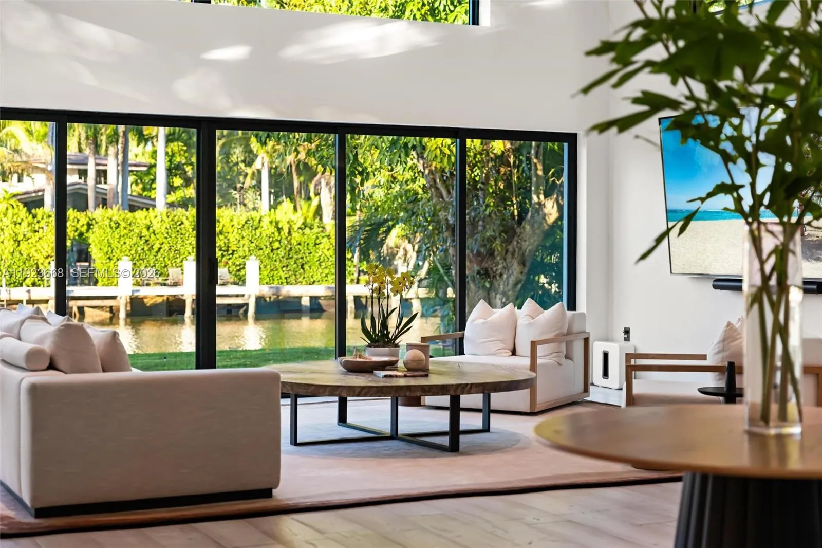 Recently fully renovated and reimagined with a complete modern transformation, this exceptional 3,100 SF residence is positioned on an elevated 16,800 SF double lot with 113 feet of direct water frontage along one of Belle Meade’s deepest and widest canals, with minimal traffic, and enhanced privacy with no fixed bridges to Biscayne Bay. Designed for elevated indoor–outdoor living, the home features soaring ceilings, a desirable split-bedroom layout for privacy, and seamless flow ideal for entertaining. Interiors showcase a gourmet Miele chef’s kitchen, custom millwork, premium finishes, Lutron HomeWorks smart lighting, whole home audio, UniFi networking, motorized window treatments, and abundant skylights that flood the home with natural light.rnThe 750 SF primary suite offers a true retreat with spa-style bath, steam shower, soaking tub, and designer stone finishes, complemented by a 225 SF custom walk-in closet with bespoke cabinetry, LED lighting, integrated sound, center island, and skylight illumination. Ideal for boating enthusiasts, the property provides direct bay access, shore power at the seawall, and an expansive yard perfect for entertaining. The grounds feature a full bocce court, lush privacy landscaping, and ample space for a future pool or expansion. Centrally located with top private schools including The Cushman School and Miami Country Day School. A rare opportunity to acquire a turnkey estate offering privacy, scale, and immediate Biscayne Bay access.