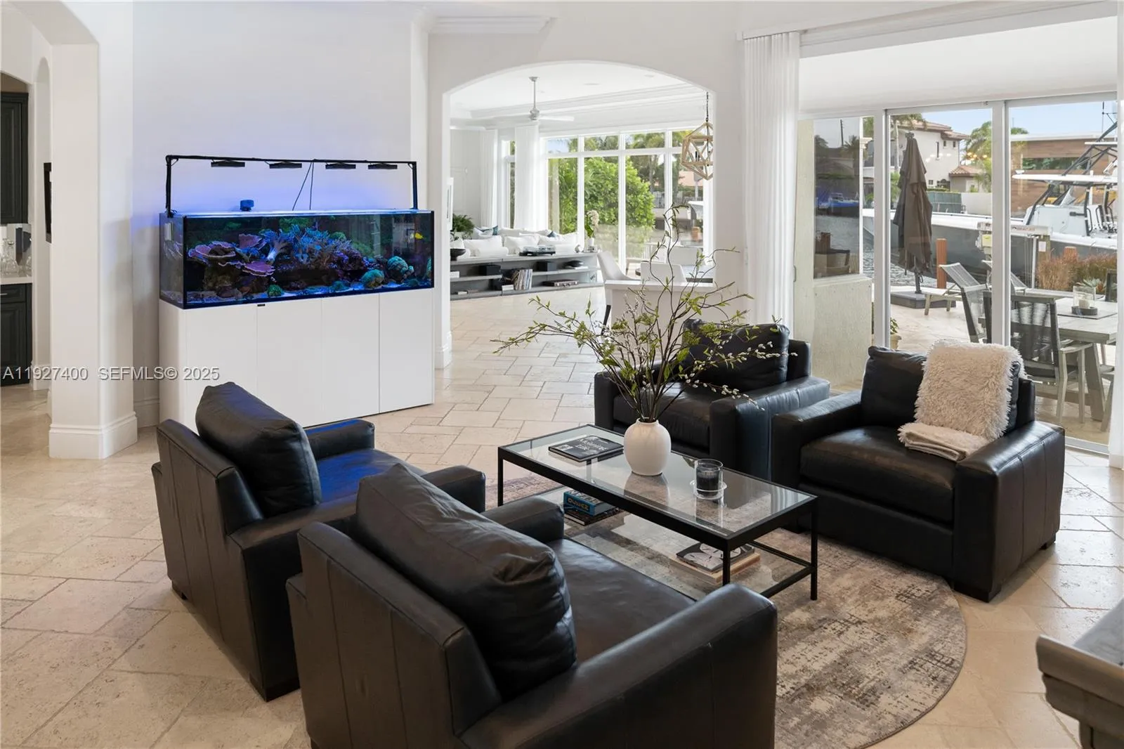 Welcome to the ultimate boater’s estate in Lighthouse Point. Situated on a prestigious cul-de-sac, this Mediterranean residence sits on a massive turning basin, offering expansive water views and effortless maneuverability for large vessels. The property features 100 feet of water frontage with no setbacks and a brand new 32,000 lb Hurricane boat lift.rnrnEnter through double doors to soaring ceilings, travertine flooring, and water views from the moment you step inside. The floor plan is designed for multi-generational luxury, featuring a residential elevator and dual laundry centers (upstairs and down). The kitchen was recently refreshed with new quartz countertops, opening to a spacious family room. The first floor hosts two guest suites, including a VIP suite with a fully remodeled 2024 ensuite bath and walk-out pool access.rnrnUpstairs, discover a dedicated executive office, a remodeled morning bar/coffee lounge, and a gym (or additional bedroom) with a private balcony. The exterior is an entertainer’s paradise featuring a sprawling covered loggia, summer kitchen, heated pool, and spa. Recent Upgrades: Full-home Generac generator, impact windows/doors, 1 new A/C unit (2025), new landscaping, 3-Car Garage. Unbeatable value on a street with neighboring $10M+ estates.