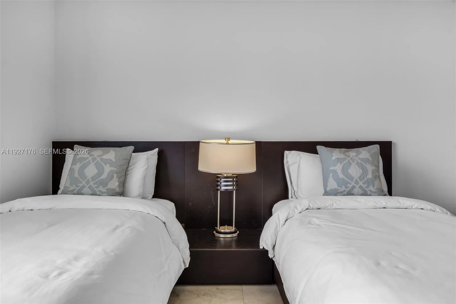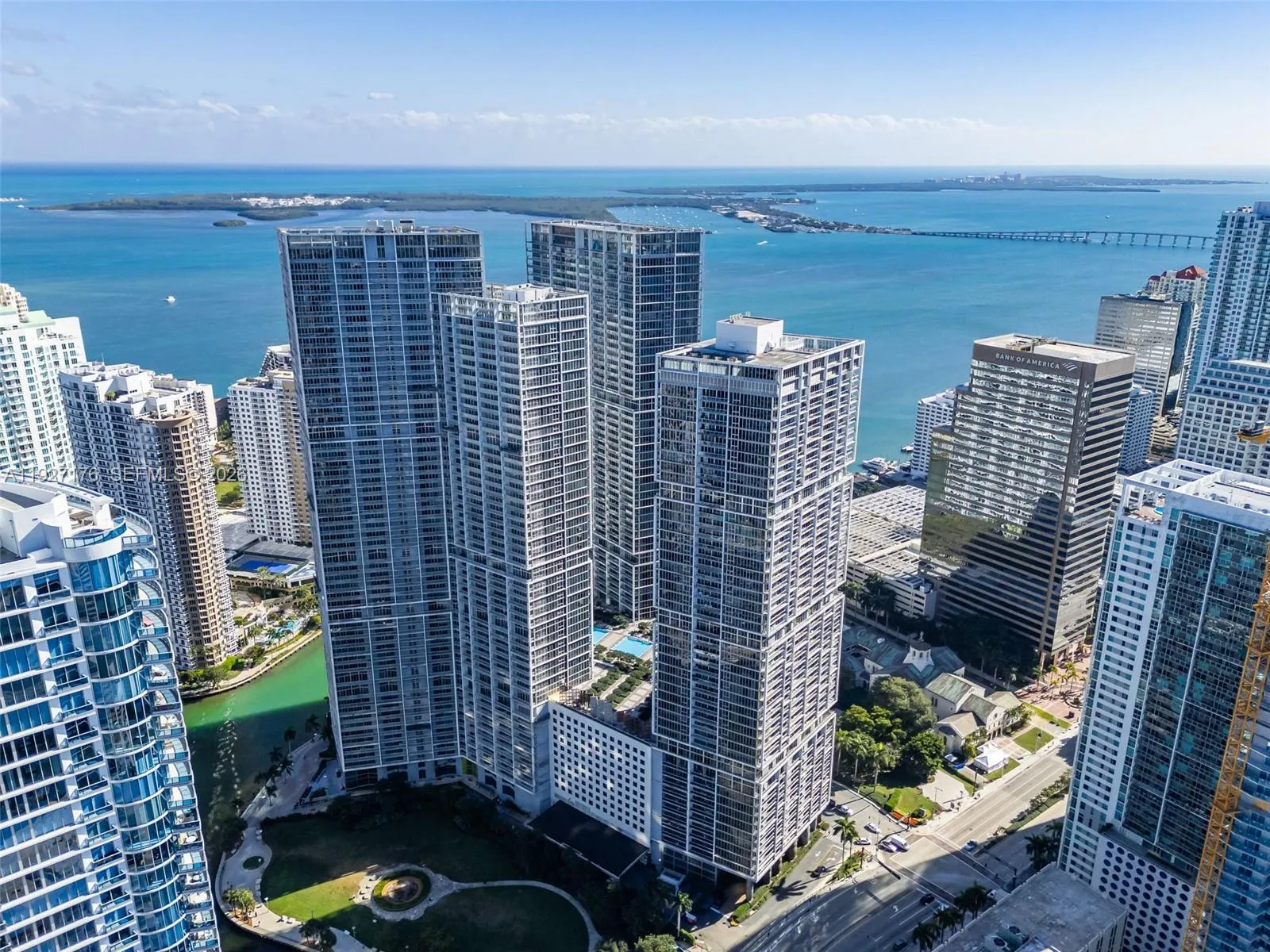 One of the most iconic buildings in South Florida designed by Arquitectónica with interiors by Philippe Stark . Best line in the building with spectacular views of Brickell Key, Biscayne bay and Skyline, from every room. Featuring a balcony ideal for entertaining. Split floor plan with 2 bedrooms, 2 bathrooms, plus a den.This den can be used as an additional bedroom or a TV room.rnHigh-end Miele and Subzero kitchen appliances . Marble floors throughout. Custom-made walk-in closets and window treatments. The building offers state-of-the-art amenities: a 300-ft swimming pool, a 50-ft person hot tub, spa/fitness center, game room, poolside café, on site restaurants and 24-hour full-service concierge/valet parking. Steps from Brickell Key City Center, world class dining, shopping and entertainment. Cable and internet included. One assigned parking space. Sold unfurnished. Easy to show.