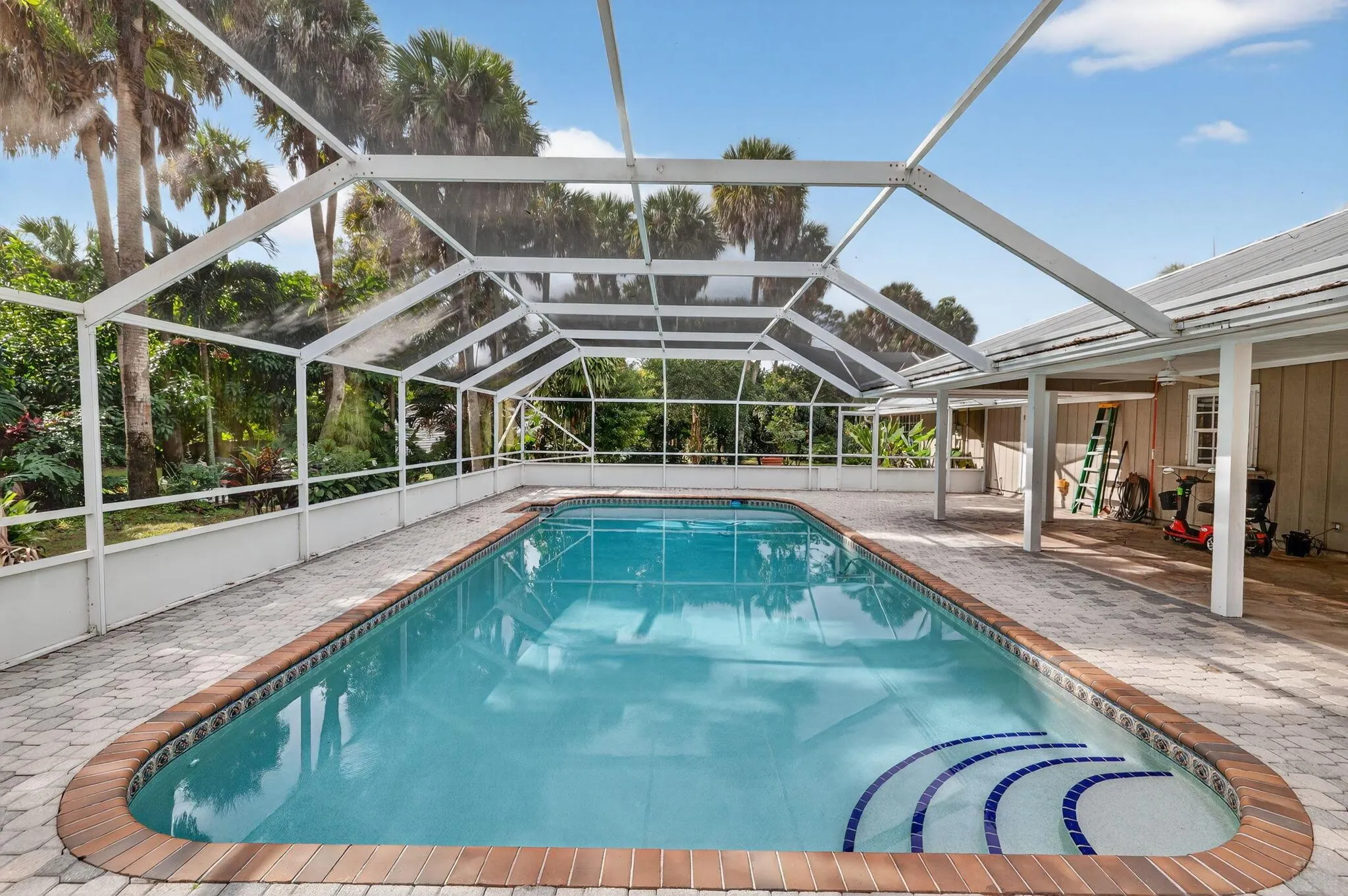 Discover Your Hidden Gem! Welcome to this secluded 2.5-acre estate, offering the perfect blend of privacy and convenience–tucked away yet just minutes from everything you need. This sprawling retreat features an extraordinary collection of 300+ fruit trees and plants, creating a lush, garden-style oasis right in your backyard. Inside, you’ll find two spacious owner’s suites, including one with its own private entrance and massive living area, ideal for multi-generational living or guest accommodations. Enjoy a massive living area perfect for entertaining, plus the comfort and efficiency of a gas range, gas water heater, and gas dryer. Step outside to a fully fenced property, complete with a water filtration system and a refreshing pool–perfect for cooling off on warm Florida days.