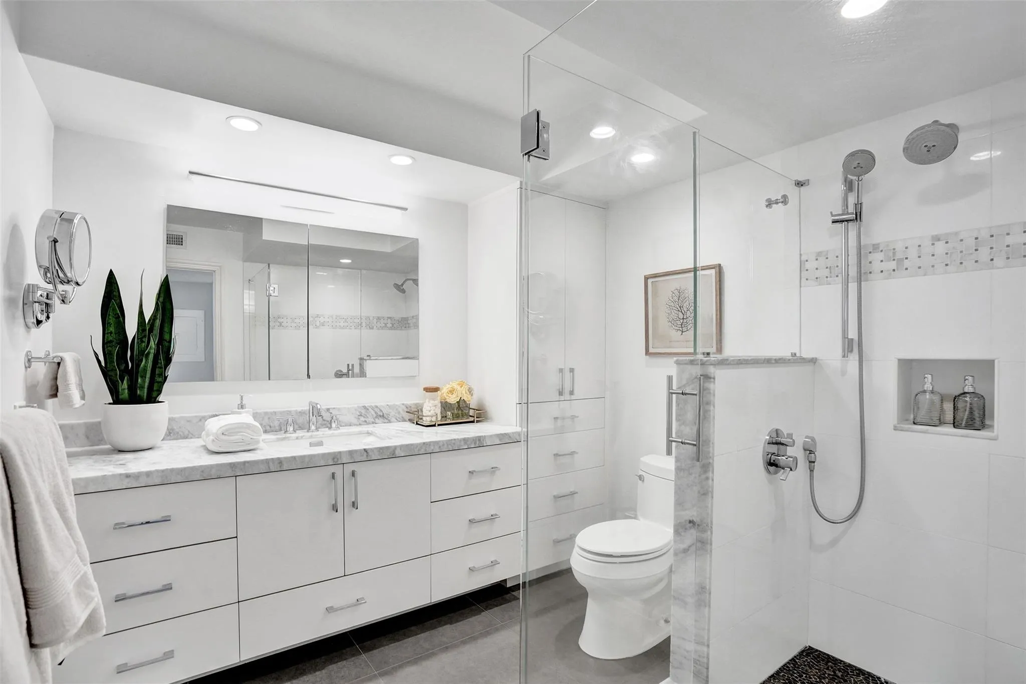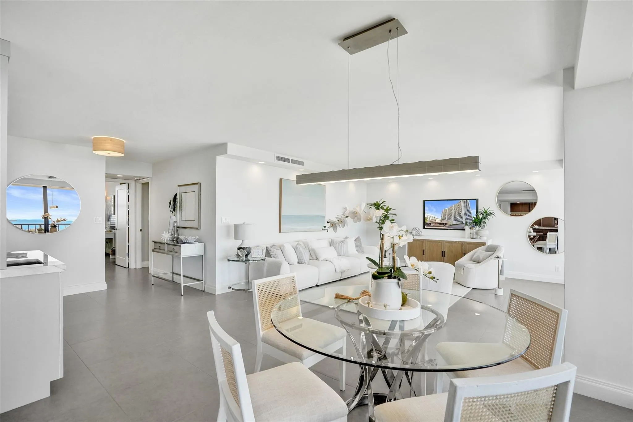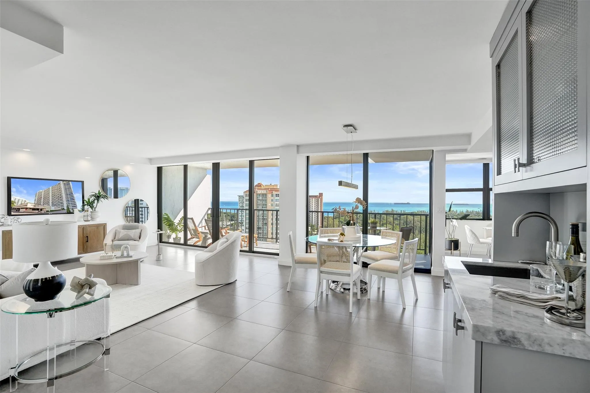 One step into this unit and you will say “WOW”. Sweeping views of the Ocean, Intracoastal and Birch Park. Truly one of the best views at any price point. This unit is absolutely beautiful. Owners did a complete renovation with no expense spared. Very high quality work and impeccable attention to detail. Fully open great room concept. Kitchen features custom Walnut cabinetry, Quartzite counters and Thermador/Sub Zero appliances. All Hurricane Impact Glass. Custom electric window treatments that disappear to enhance the East views. Both baths are custom and absolutely beautiful. Tons of storage thruout unit. Recessed lighting in all rooms. Porcelain floors thruout. All closets are custom and fully built out. Building has undergone full renovation all paid by seller. Building has reserves