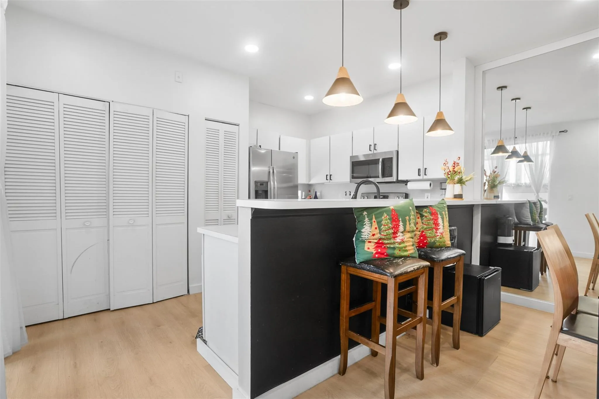 Beautifully maintained townhome perfectly situated in the desirable community of Eagle Creek. This residence offers a bright and airy layout with 3 spacious bedrooms, 2.5 baths, and thoughtful upgrades throughout. Step inside to an inviting open-concept living space featuring modern recessed lighting, wood-style flooring, neutral finishes, and a customized entertainment wall that elevates the main living area. Front patio, LOW HOA, and new roof! Schedule your showing today!