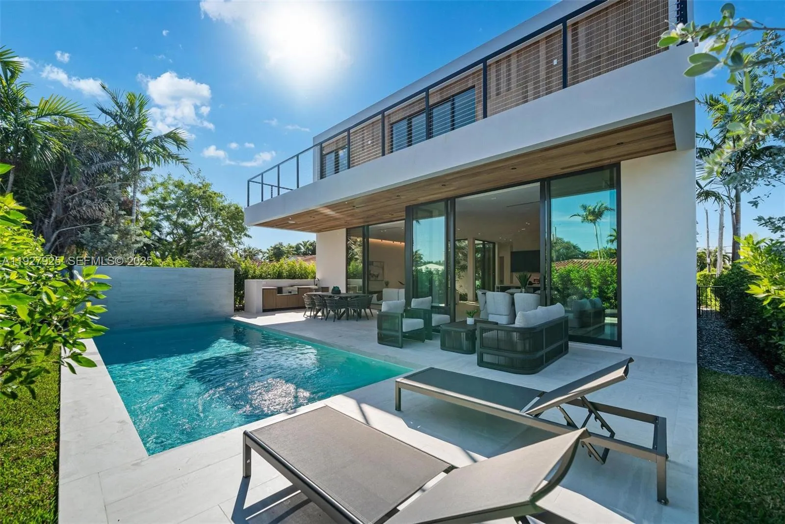 A coastal modern gem only moments from the beach. Six bedrooms and 6.5 bathrooms centered around a sun filled courtyard that brightens the entire home. Enjoy Wolf and Sub Zero appliances in the gourmet kitchen and speakers throughout for seamless living. The east facing backyard captures the ocean breeze and features a spectacular summer kitchen for effortless entertaining.