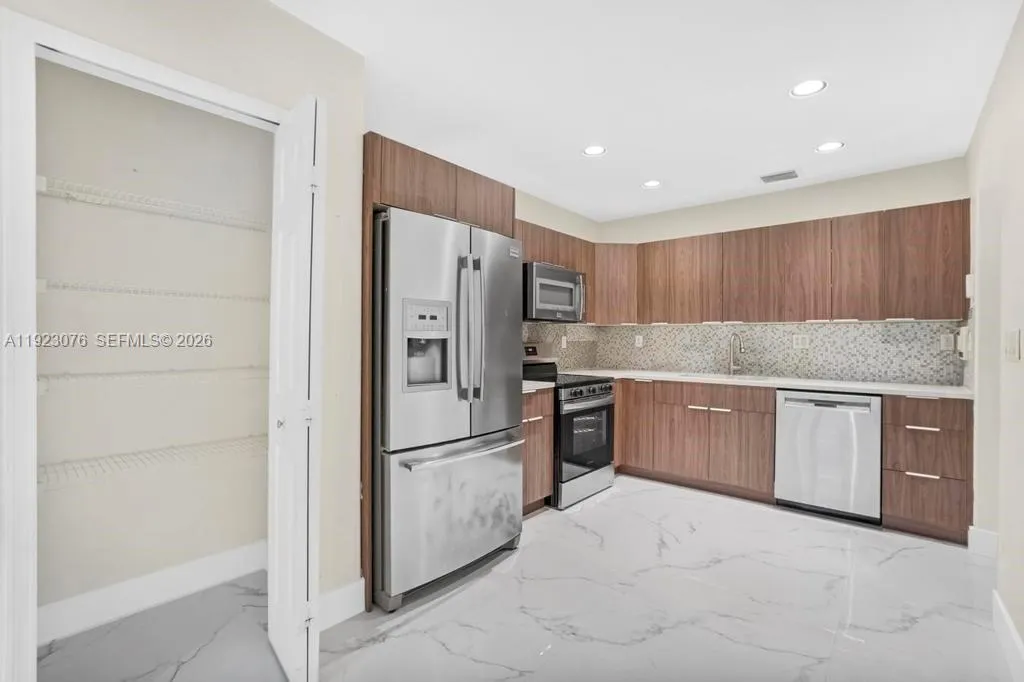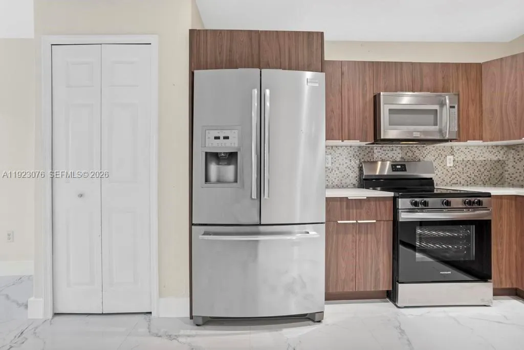 This gorgeous CORNER townhouse in Dimensions at Doral has many fresh upgrades, including NEW FLOORING on the first floor and on the stairs, NEW KITCHEN CABINETS, and a NEW VANITY+MIRROR in the main suite’s bathroom. It is a fantastic option in a charming GATED community.rnThe first floor offers a spacious living/family room, a formal dining area with its own window, a kitchen with a large breakfast area and a pantry, a half bath, a storage under the stairs and another storage next to the half bath, and a fenced patio with even more storage there, too! Upstairs, you’ll find the main suite, two more bedrooms and a den, ideal for an office, playroom, or flex space. Every bedroom features custom closets, a ceiling fan and zebra blinds, and the home also has accordion shutters throughout for easy storm preparation. The full size washer and dryer are in the one car garage. rnThis association is about half a mile from NW 41st Street, with quick access to the Turnpike and nearby shopping, dining, Doral’s top rated schools, and RIGHT NEXT to the Trails & Tails Park, making it a fantastic option for pet lovers. The owners are accepting tenants with pets. The only association requirement reg. pets is that each pet be registered with payment of $85 pet fee/pet.rnOnce you visit, you’ll appreciate how bright, open, and roomy this corner layout feels. Renter’s insurance required. Please note the refrigerator shown in the pictures will be replaced with a brand new unit of a different model.
