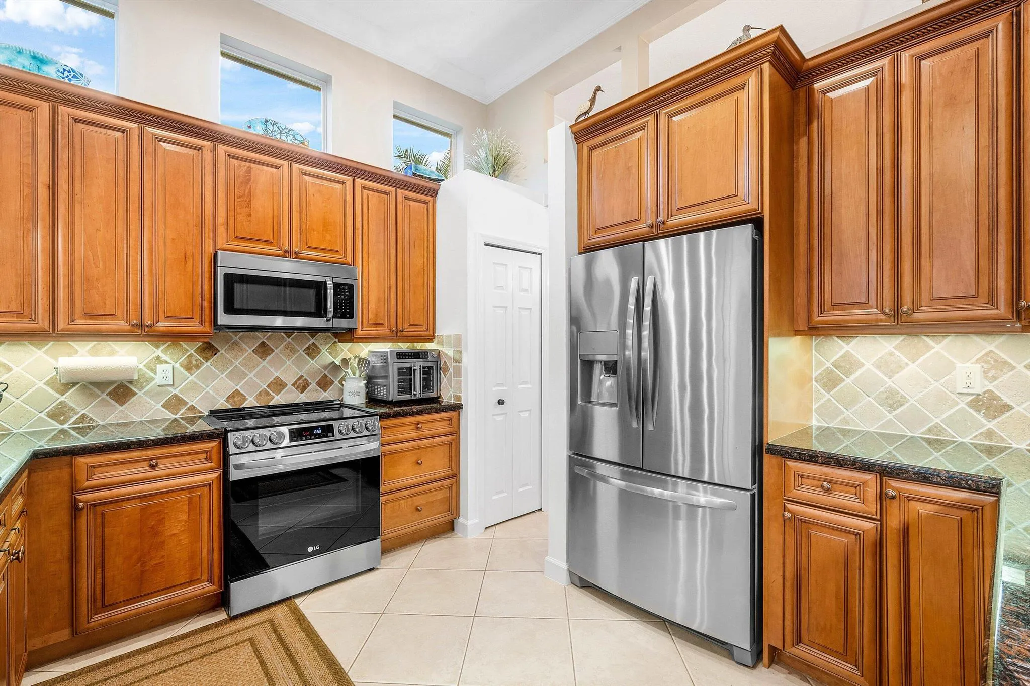 Located in the vibrant golf community of PGA Village, this newly listed three-bedroom, two-bathroom home offers a blend of elegant design and functional features. From the moment you enter through the dual-glazed 8-foot entry doors, you’ll notice soaring 12-foot ceilings, crown molding, and an abundance of natural light that creates a welcoming atmosphere throughout.The open-concept kitchen is thoughtfully designed for both entertaining and everyday living, featuring granite countertops, 42-inch upper cabinets, stainless steel appliances, hi-hat lighting, an eat-in bar top, and a cozy dinette area. A formal dining room with a built-in mini bar makes hosting guests a seamless experience.The primary bedroom offers a pair of spacious walk-in closets and a luxurious ensuite bath