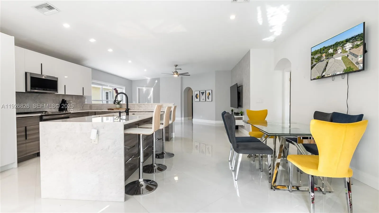 Luxury living in Lantern Key!rnThis thoughtfully upgraded 4-bedroom, 2-bath home blends comfort, style, and a warm sense of welcome from the moment you step inside. Vaulted ceilings open the space beautifully, leading into main-floor living with three bedrooms thoughtfully arranged for convenience and privacy, while a spacious guest suite sits quietly upstairs.rnModern finishes shine throughout: 36×36 porcelain tile, water-resistant laminate in the bedrooms, quartzite countertops, custom cabinetry, and GE Profile appliances. Alexa-enabled smart features add ease, controlling lighting, irrigation, and everyday routines with a simple voice command. The master suite offers a spa-inspired escape with a soothing jetted tub.rnThe fenced yard feels like an extension of the living space, complete with serene lake views, synthetic grass, and full accordion shutters for peace of mind. Even the garage has been elevated with epoxy floors and ceiling-mounted storage that keeps everything neat and polished.rnA home that feels luxurious yet lived-in, modern yet comfortable — a place designed for real life, but with an everyday touch of ease and beauty.