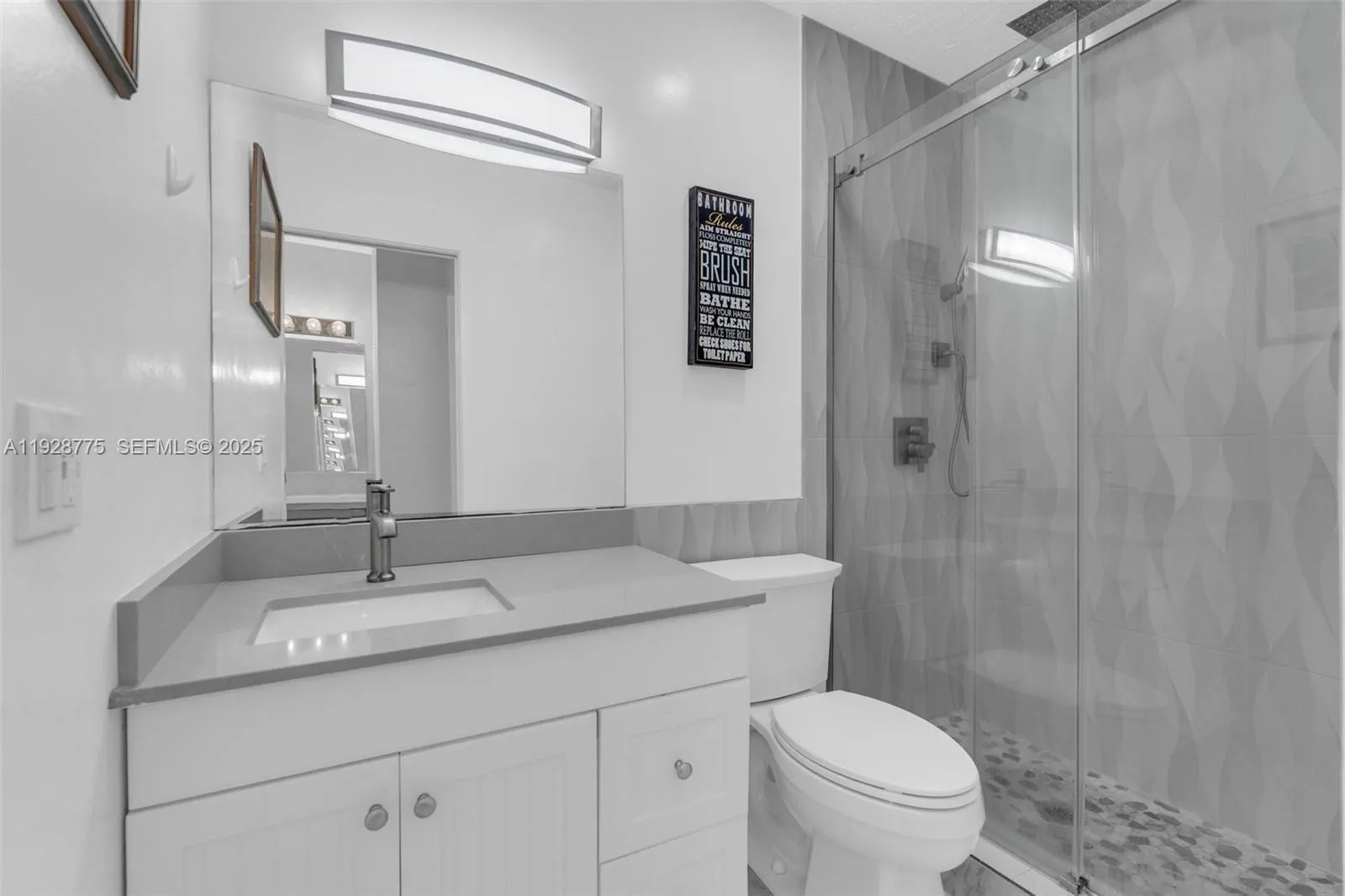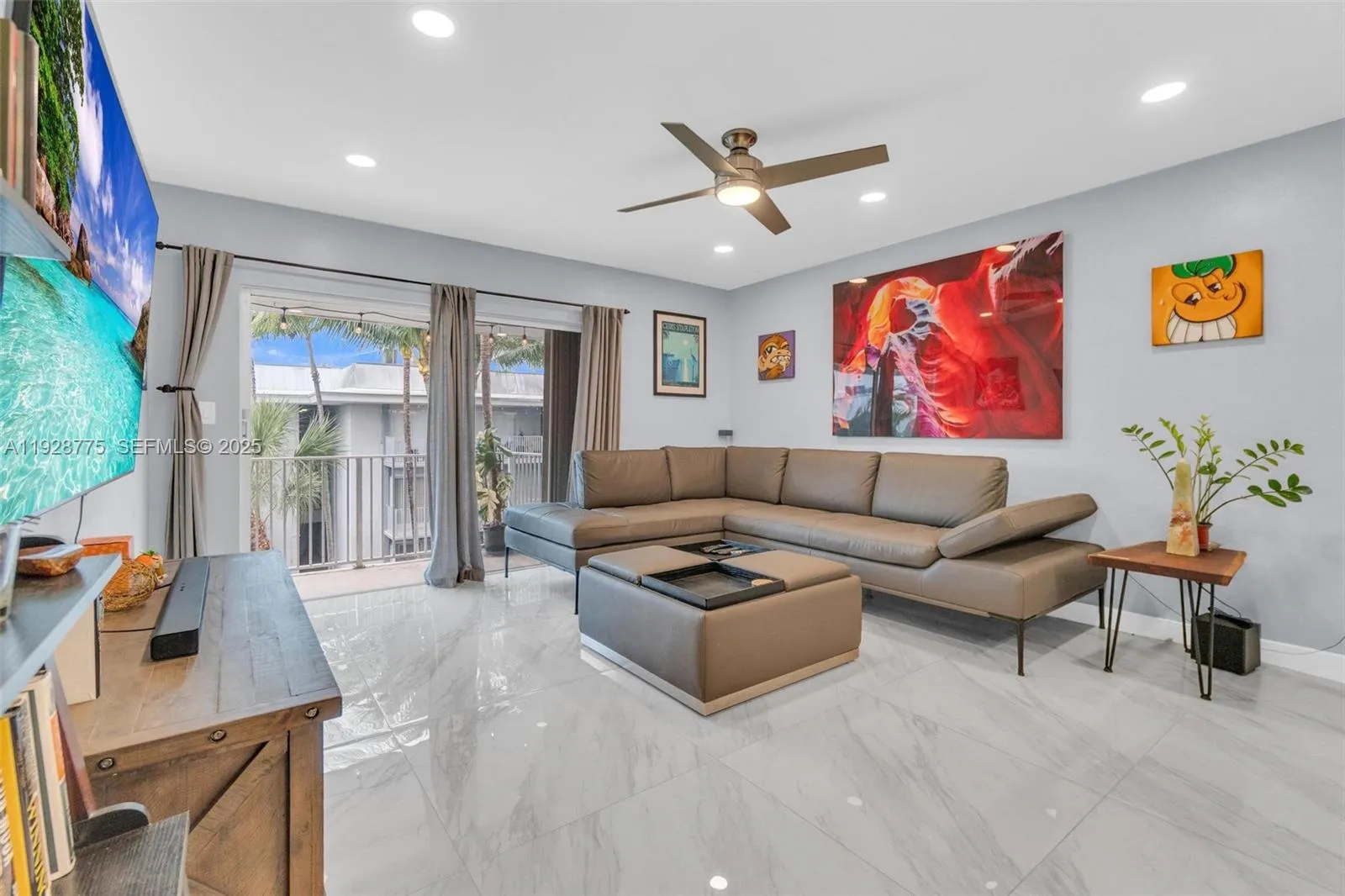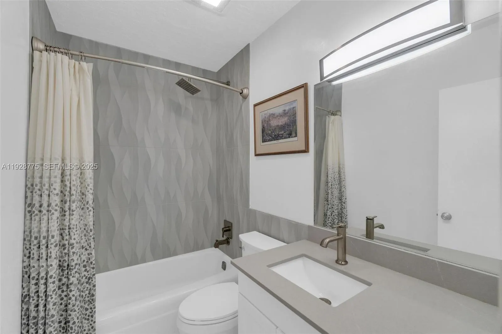 Contemporary 2023 updating includes 24×24 porcelain floors & paint job thru out entire unit, new waterfall granite kitchen counters, new extra-large sink & faucet, new white kitchen fronts, new recessed lighting thru out unit, new electric panel, new primary glass shower with custom tile & shower heads and new tile in second bathroom. Open living area and both bedrooms have direct access to 37×6 foot balcony overlooking community swimming pool. Primary 15×12 bedroom has dressing area & walk-in closet. Washer/dryer in unit. Silver Palms at Dadeland is enclosed gated community near Dadeland shopping mall, Metrorail north station, 878 & 826 Expressways.