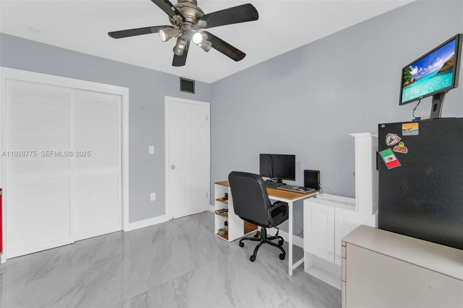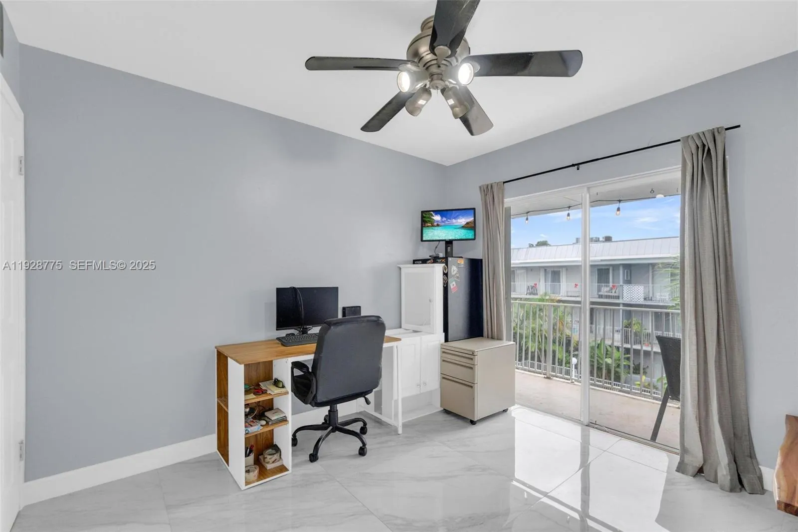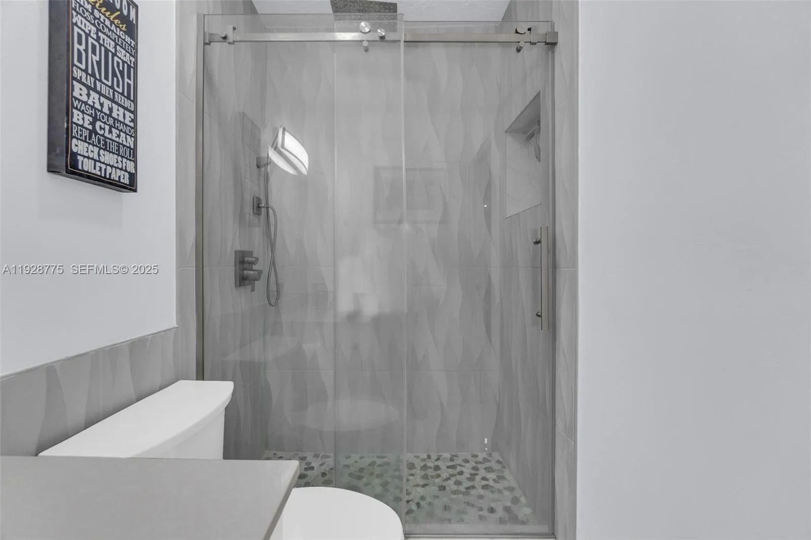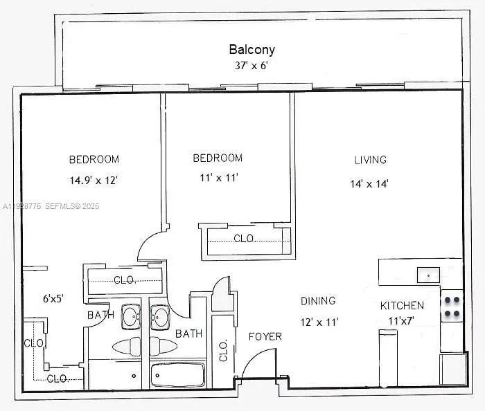 Contemporary 2023 updating includes 24×24 porcelain floors & paint job thru out entire unit, new waterfall granite kitchen counters, new extra-large sink & faucet, new white kitchen fronts, new recessed lighting thru out unit, new electric panel, new primary glass shower with custom tile & shower heads and new tile in second bathroom. Open living area and both bedrooms have direct access to 37×6 foot balcony overlooking community swimming pool. Primary 15×12 bedroom has dressing area & walk-in closet. Washer/dryer in unit. Silver Palms at Dadeland is enclosed gated community near Dadeland shopping mall, Metrorail north station, 878 & 826 Expressways.