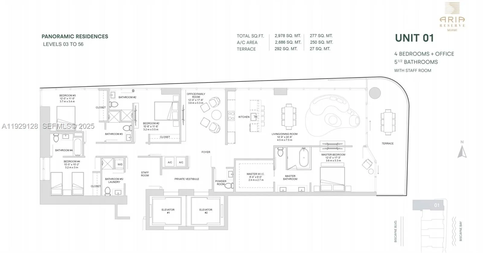 Experience Waterfront Luxury Living – Now Available for Rent!rnResidence 2901 offers an exclusive coastal lifestyle with breathtaking, unobstructed views of Biscayne Bay, the Atlantic Ocean, and Miami’s iconic skyline. Wake up to spectacular sunrises streaming through floor to ceiling windows that illuminate this expansive 4-bedroom + office, 5-bath home, complete with maid’s quarters and $100K in designer upgrades.rnrnEnjoy the convenience of two private elevator entrances, two premium parking spaces, custom closets, upgraded blinds, and a thoughtfully enhanced layout designed for comfort and sophistication. Each bedroom features its own spa-inspired en-suite bath, while the versatile den can serve as an office, media room, or guest area perfect for modern living.rnrnThis residence is part of one of Miami’s most desirable waterfront communities, offering world class amenities, a vibrant atmosphere, and an unbeatable location just minutes from top dining, shopping, cultural venues, and the best Miami has to offer.rnrnLive the lifestyle you deserve—exclusive, serene, and endlessly scenic.