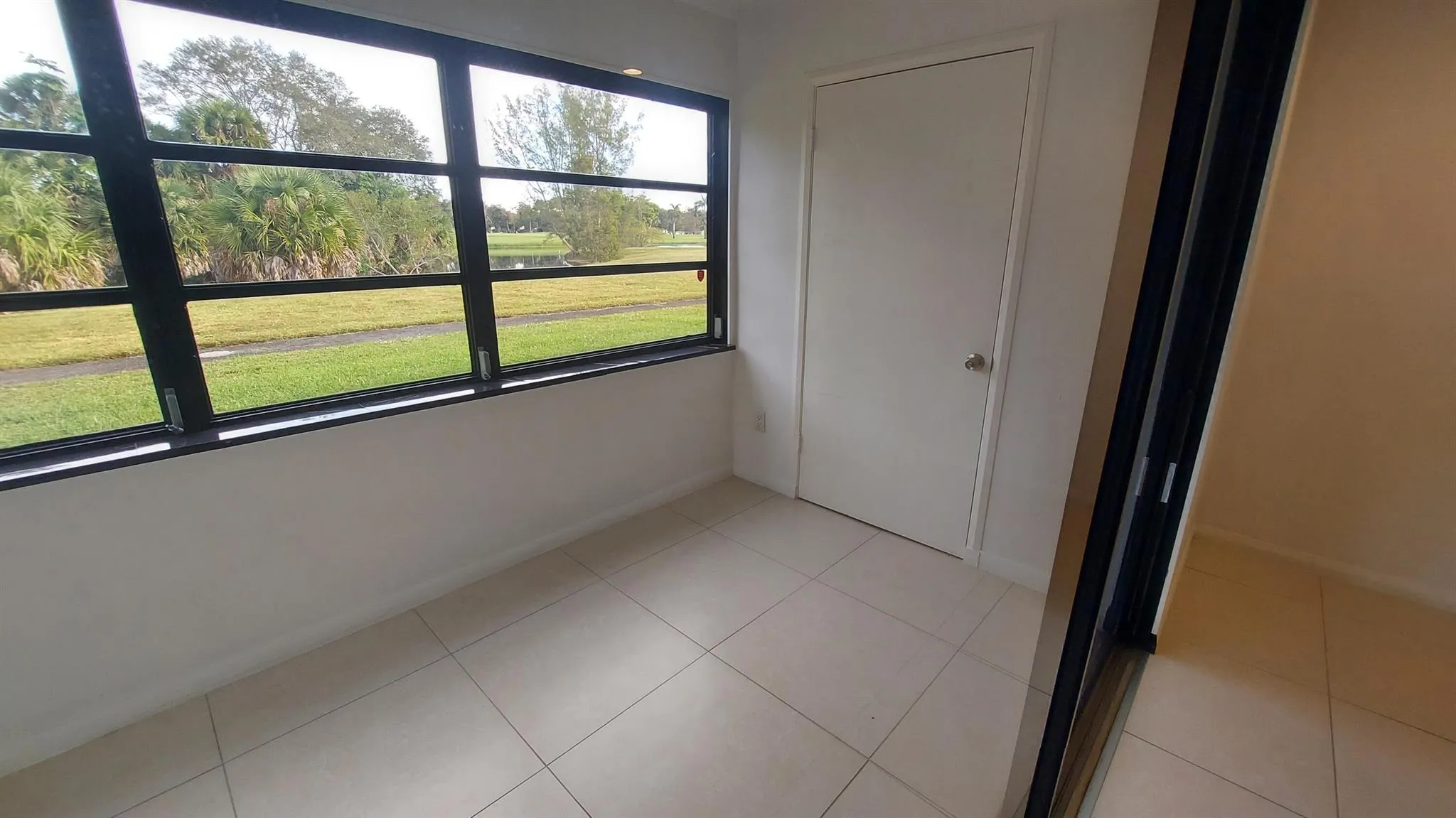 Discover this updated, first-floor unit offering exceptional views of a serene pond and lush greenscape. This 2/2 Condo features a modern kitchen with granite countertops and stainless steel appliances, large-format tile flooring throughout (including closets), an updated master shower, a walk-in master closet, and dual sinks. Enjoy the expansive, window-lined Florida Room, which includes a storage closet and direct access to walking paths. Complete with hurricane shutters for peace of mind. The association fee covers cable/Comcast services. Pets are welcome (up to 25 lbs), and residents have access to two community pools.