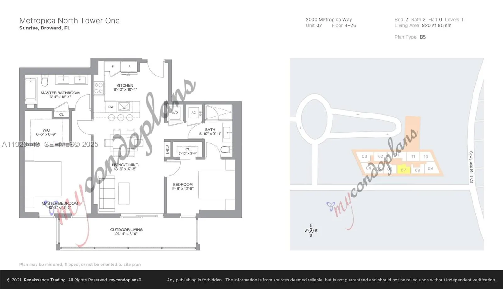 Spacious 2 bed/2 bath at Metropica community in Sawgrass. European style cabinetry, quartz countertop, stainless steel appliances, porcelain tile floors, walk-in closets with built ins. Metropica offers a 24 hour concierge and security service, 24hr fitness center, indoor and outdoor massage therapy rooms, steam room and sauna, resort-style pool with sun-shelf lounging area, poolside cabanas and lounge areas, two full size tennis courts, children’s indoor play areas, clubroom with bar, and indoor surround-sound movie theater. Vacant, easy to show.