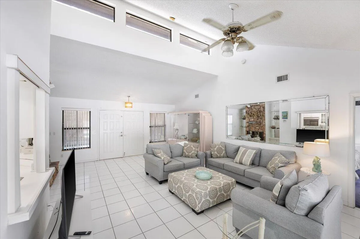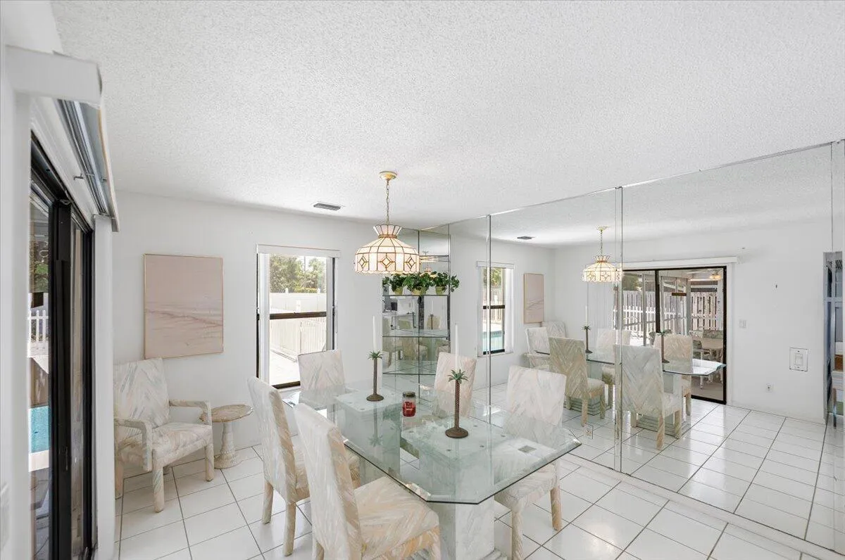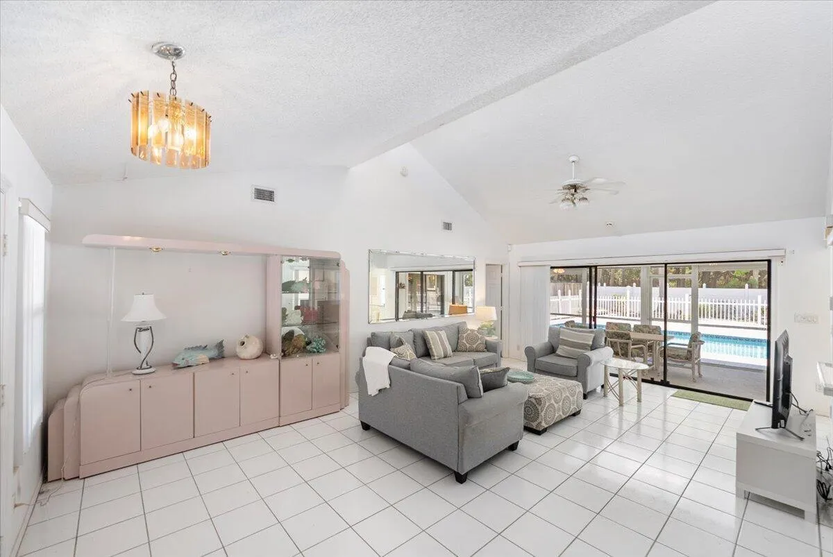 This is a rare opportunity to own a slice of paradise in a sought-after Jupiter location. Just steps from DuBois Park, Jupiter Beach, and the scenic Inlet, this charming single-family home offers coastal living at its finest. This beautiful residence features 3 spacious bedrooms, 2 full bathrooms, and a 2-car garage. Two expansive covered patios overlook a sprawling, fenced backyard with a sparkling in-ground pool–perfect for relaxing or entertaining. With no homeowners association, enjoy the freedom to make this home truly your own. A grand double-door entry sets the tone, opening into a bright and airy living and dining area with soaring volume ceilings and transom windows that bathe the space in natural light. The large covered patio seamlessly connects to the pool area, ideal for