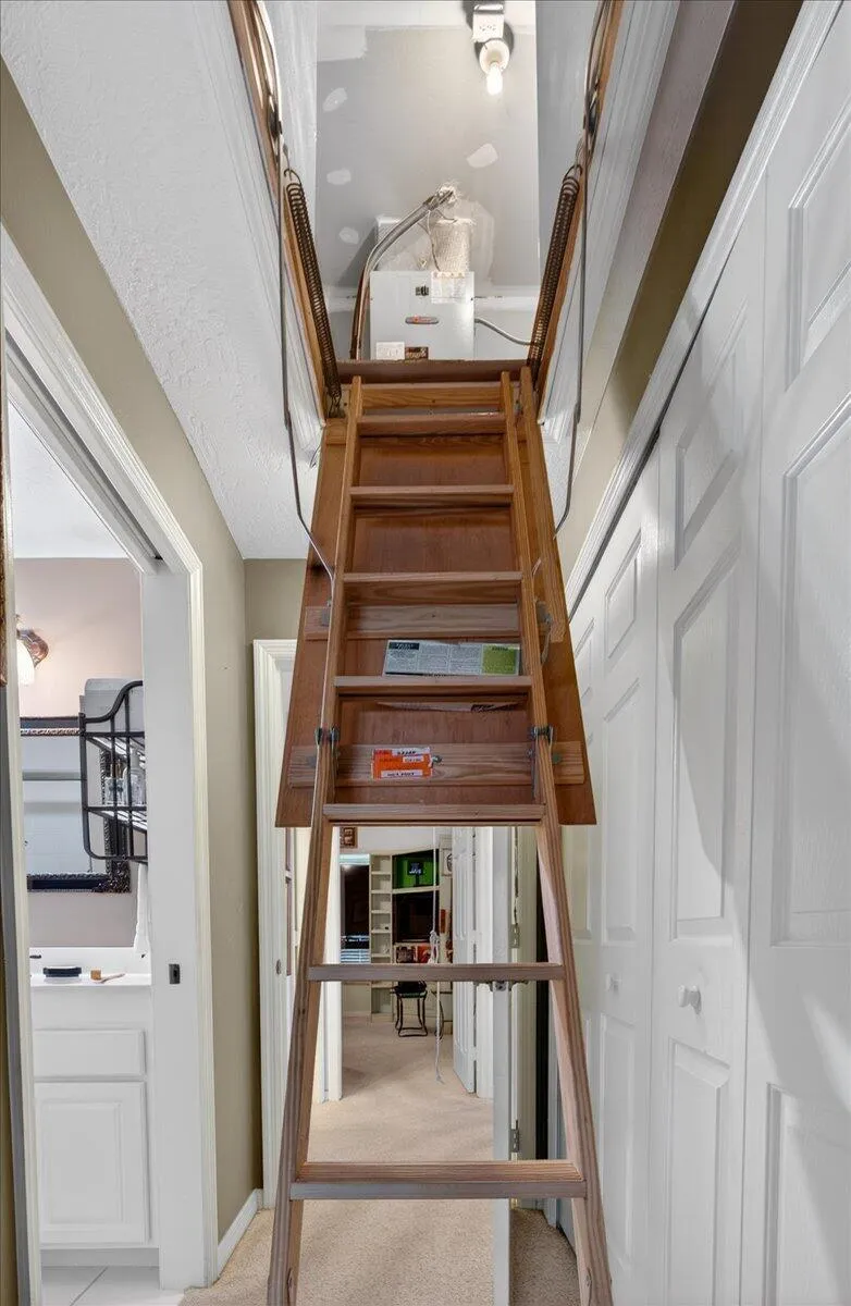 Single-story, courtyard condo with attached garage! Soaring ceilings! Private Florida room with full-sized laundry! Super storage in interior attic with pull-down stairs, plus attic in garage. Handy garage entrance to eat-in kitchen. Impact windows! Roof -2018. AC 2022. Building re-pipe 2023. HW 2025. Many furnishings included! 8 miles to the beach! Island clubhouse with heated pool, fitness center, tennis/pickleball/racquetball, library, billiards, more!