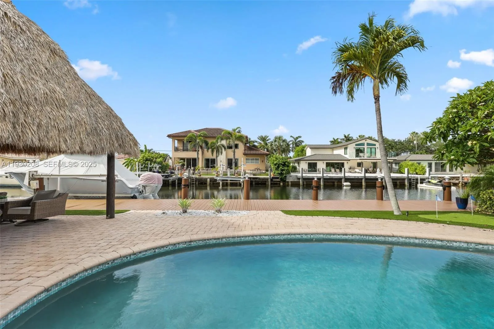 Situated on 75′ ft of waterfront with deep water access and no fixed bridges! NO HOA. This stunning home in the desirable Pompano Isles community is truly a boater’s dream offering direct ocean access just minutes to the Intracoastal. The sun filled interior features an open floor plan with porcelain tile flooring throughout. The modern white kitchen boasts quartzite countertops, top-of-the-line appliances, and a gas range and oven. Enjoy peace of mind with impact windows & doors, updated plumbing & electric, and a beautifully resurfaced pool. The spacious primary suite offers serene pool views and a spa like ensuite bath with oversized dual shower and double sinks. Step outside to your private waterfront oasis featuring a newer resin dock, boat lift, tiki hut and a small golf putting green, perfect for relaxing or entertaining.