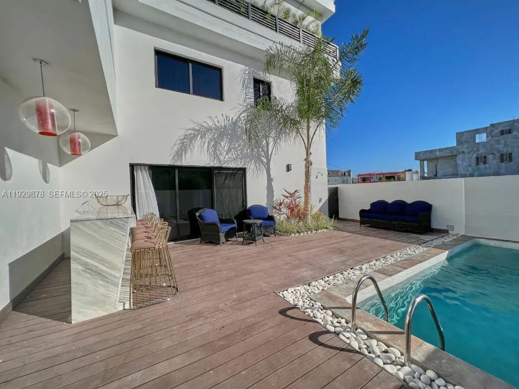 Beautiful Fully Furnished 3-Level House in Playa Caleta, La Romana. Are you looking for a dream home on one of the best beaches in the Dominican Republic?rnrnThis is your opportunity to acquire a beautiful 3-level property located in Playa Caleta, La Romana, with 414.27 sq meters (4459 sq ft) of construction and a 345 sq meter (3714 sq ft) lot.rnrnThis house features: 4 bedrooms with TVs and air conditioning, 4.5 bathrooms, TV room on all 3 levels, living room, dining room, and kitchen, laundry area and patio with a heated swimming pool, double carport, bar, terrace with a game area (billiard table), and BBQ. This property has everything you need to enjoy life by the sea, with a modern and spacious design and an excellent location. Just 3 mins away from the beach !